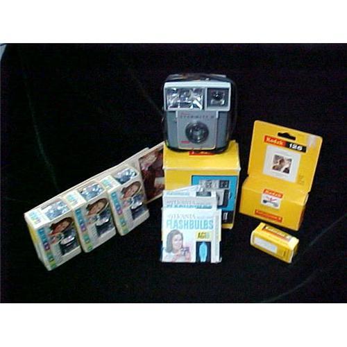 Vintage Kodak Starmite II Brownie Camera and accessories! Flash bulbs and film with more film in the camera. I don't have a clue what you will find. All the boxes and instructions come with this!