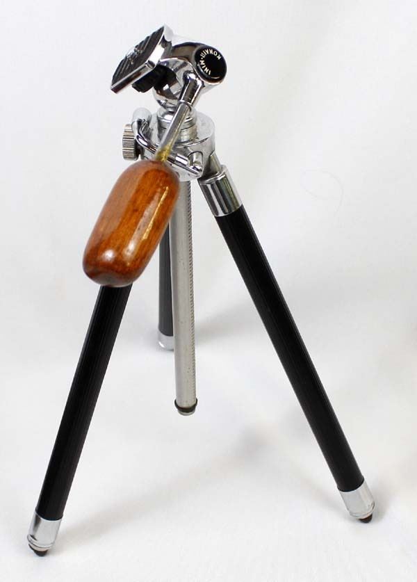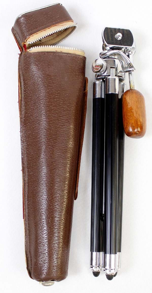 Vintage Konair Miniature Tripod in Case, ca. 1970s, pat. 10028, made in Japan, comes in original leather case, case measures 11''L, zippered closure