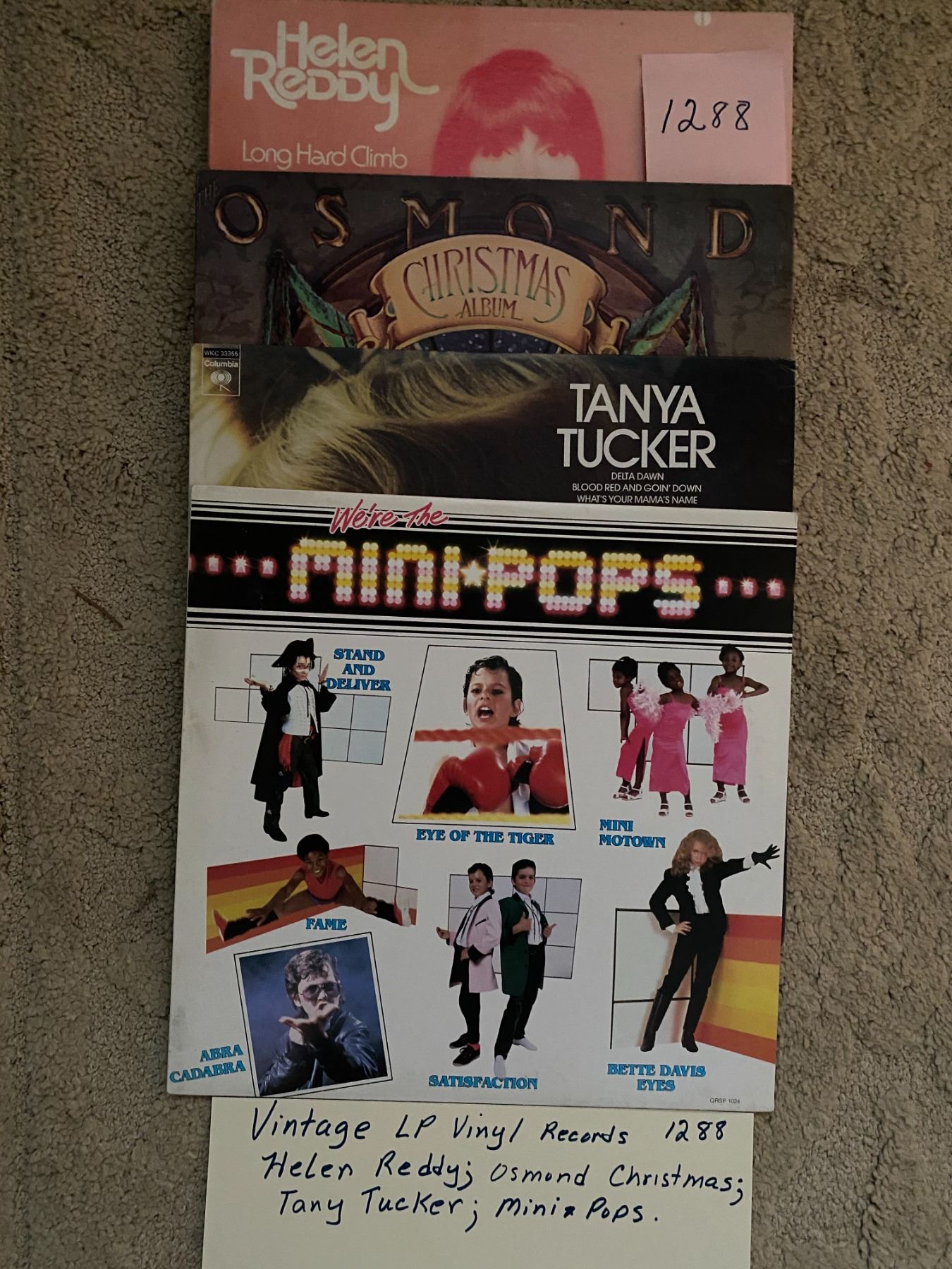 Vintage LP, Vinyl Records. Helen Reddy; Osmond Christmas; Tanya Tucker; Mini*Pops.