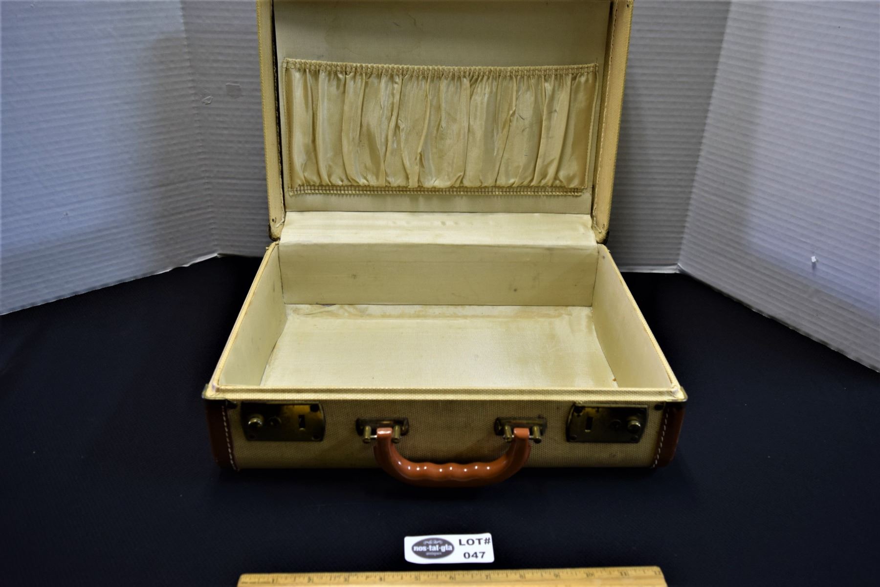 Vintage Ladies Overnight Case with Satin Lining and Tweed Fabric Exterior