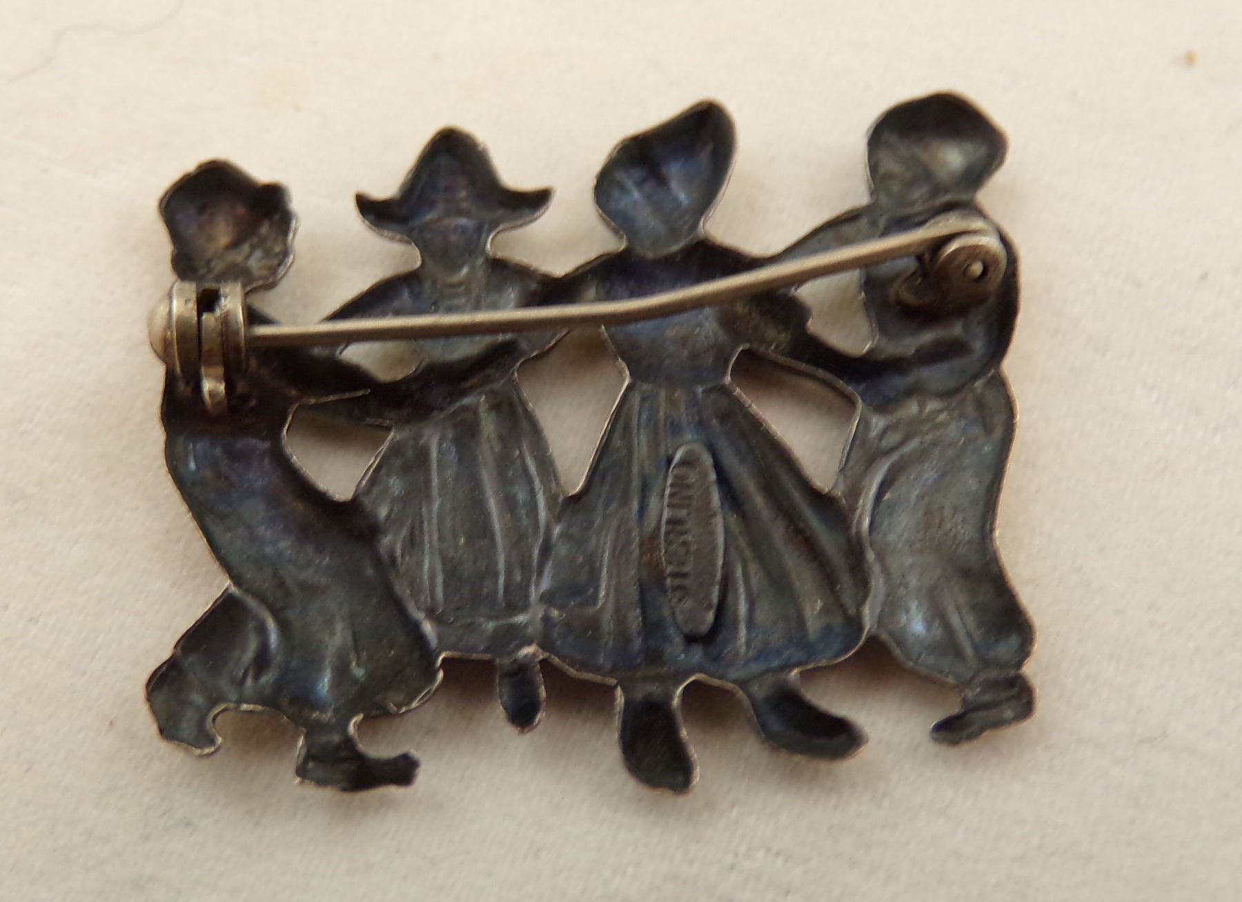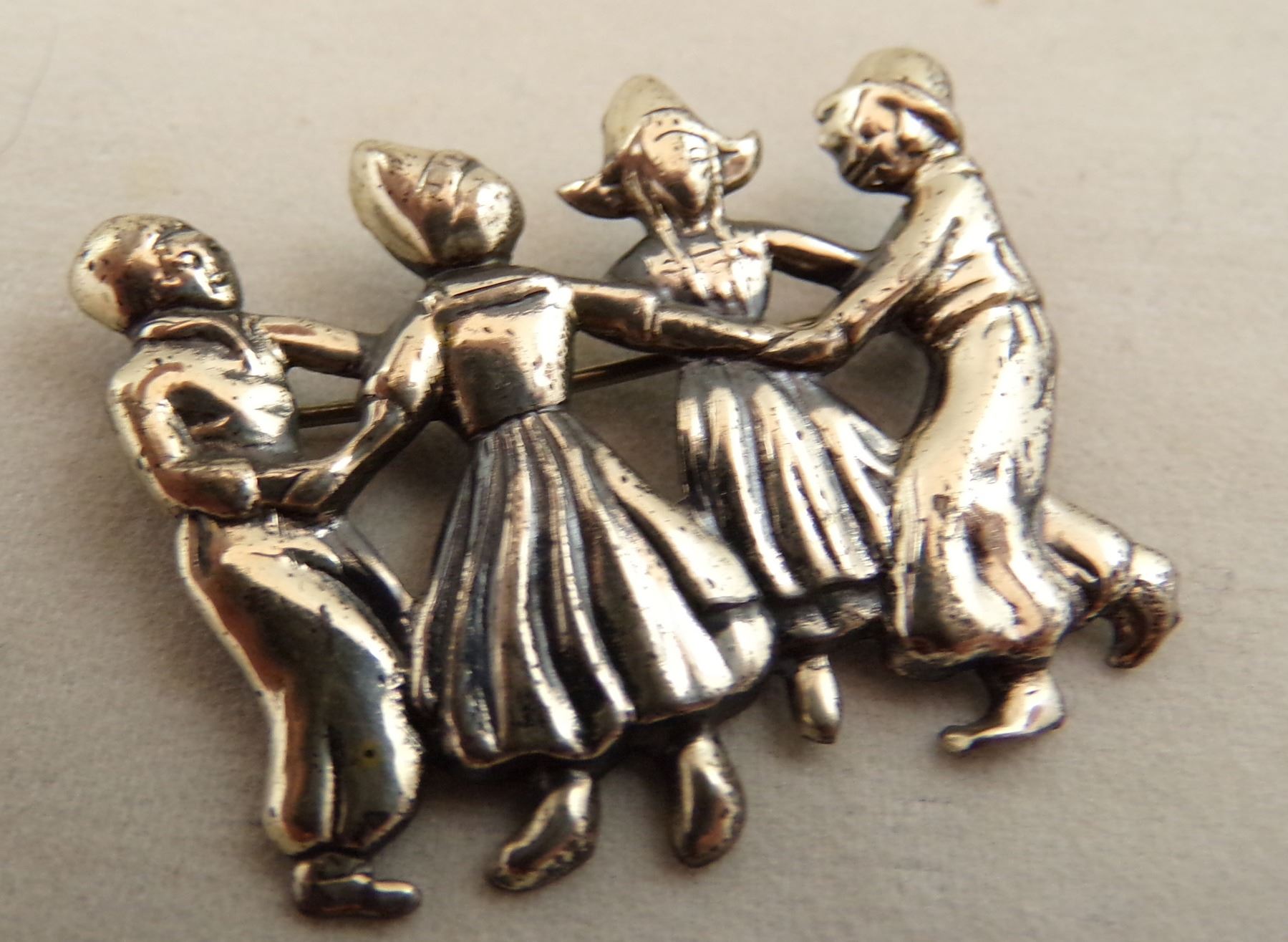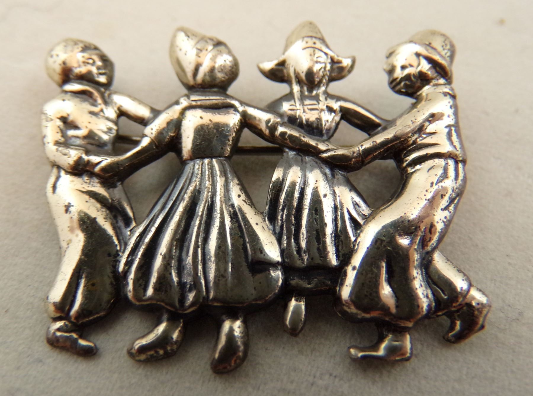 Vintage Lang Sterling Dancing Dutch Couples Pin, measures 1.75''L x 1.25''H, stamped sterling