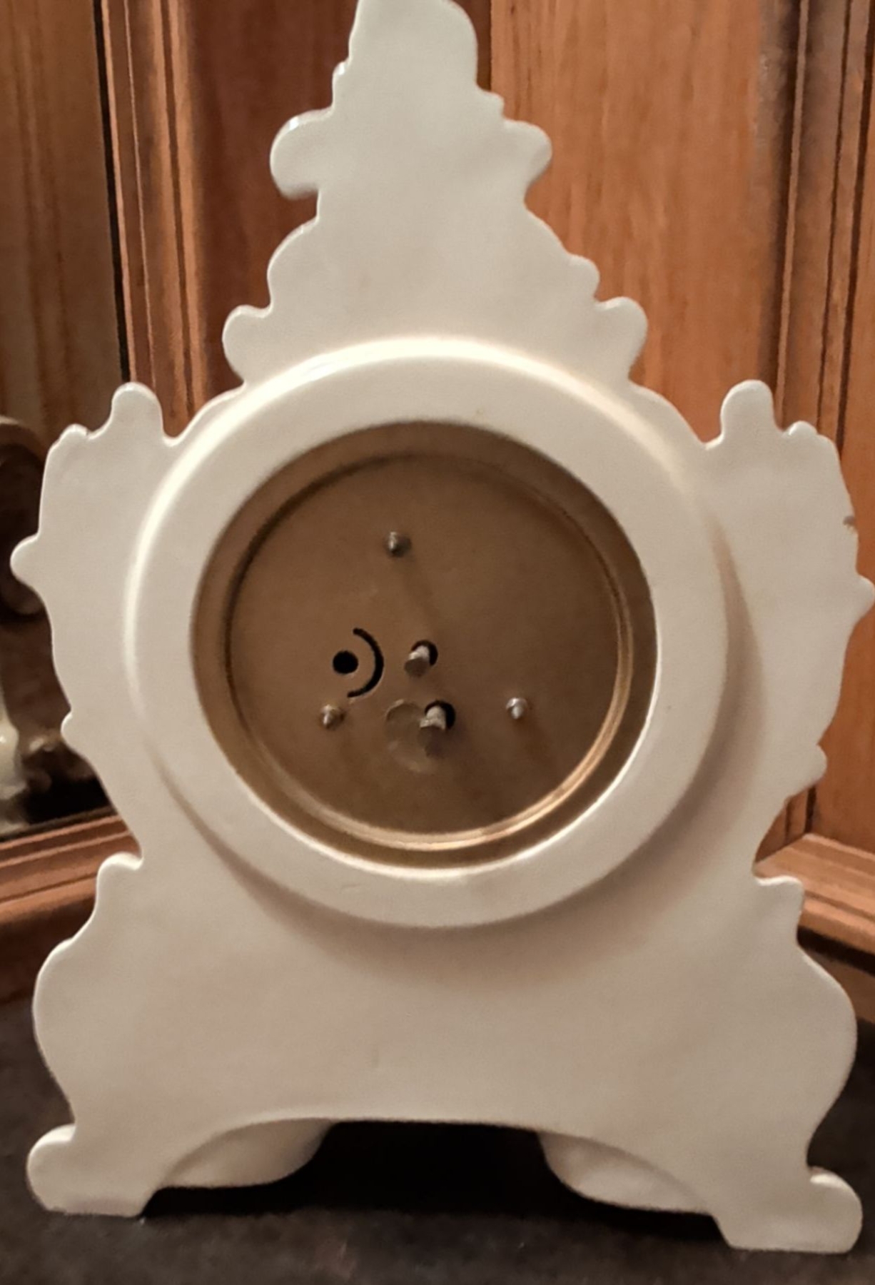 Vintage Lanshire Porcelain Mantel Clock 10 Tall w/ Elegant French Corbels