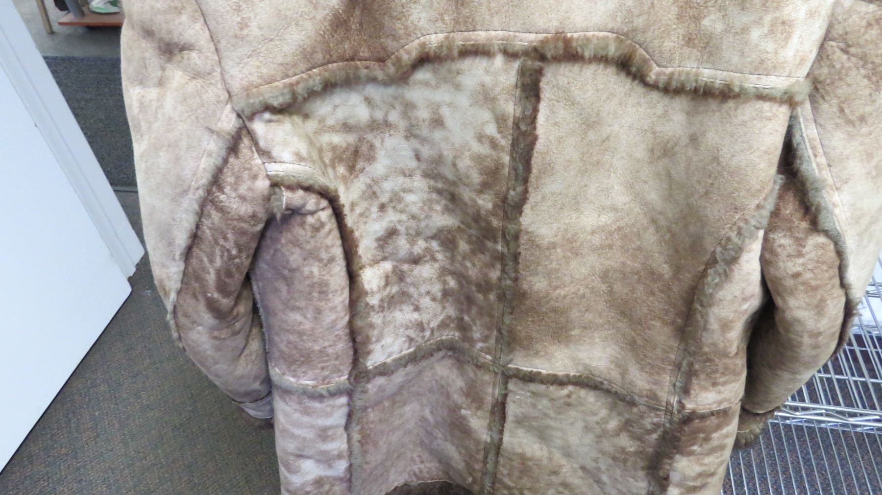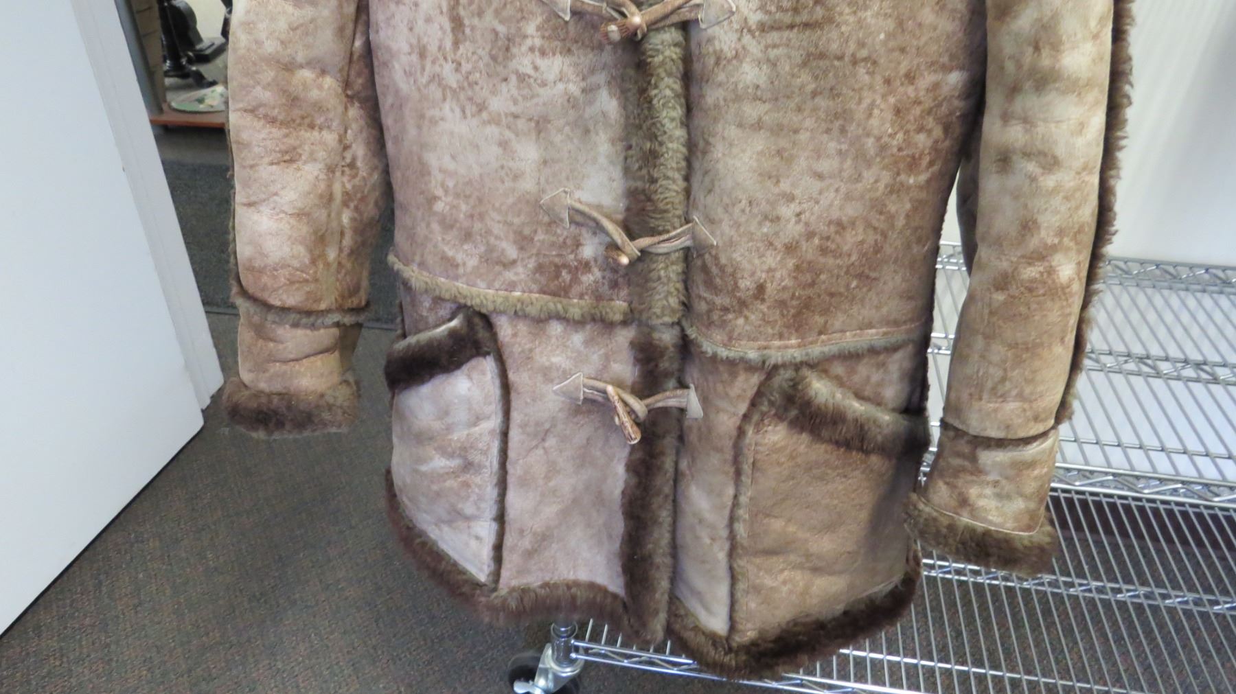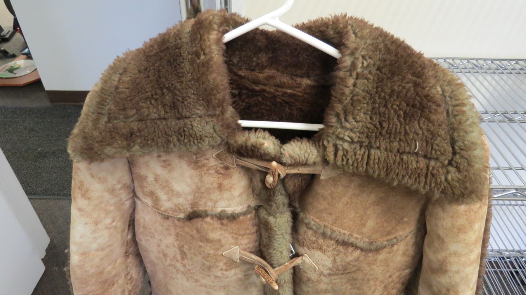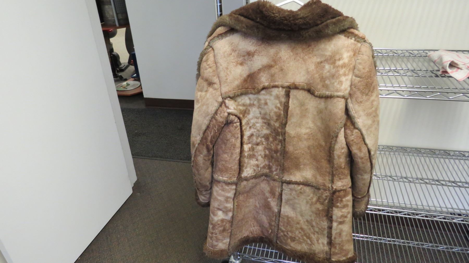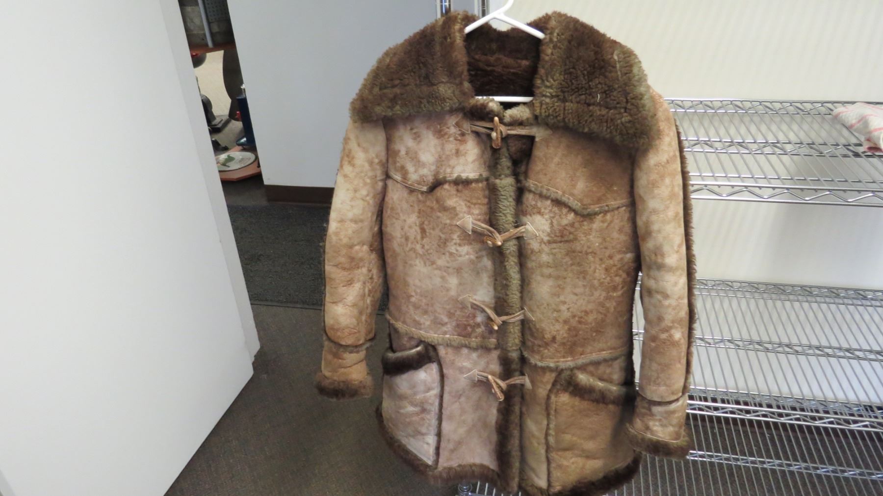 Vintage Lantry Leather brand mens fur coat - zipper working- size looks like a medium - has one hole by underarm