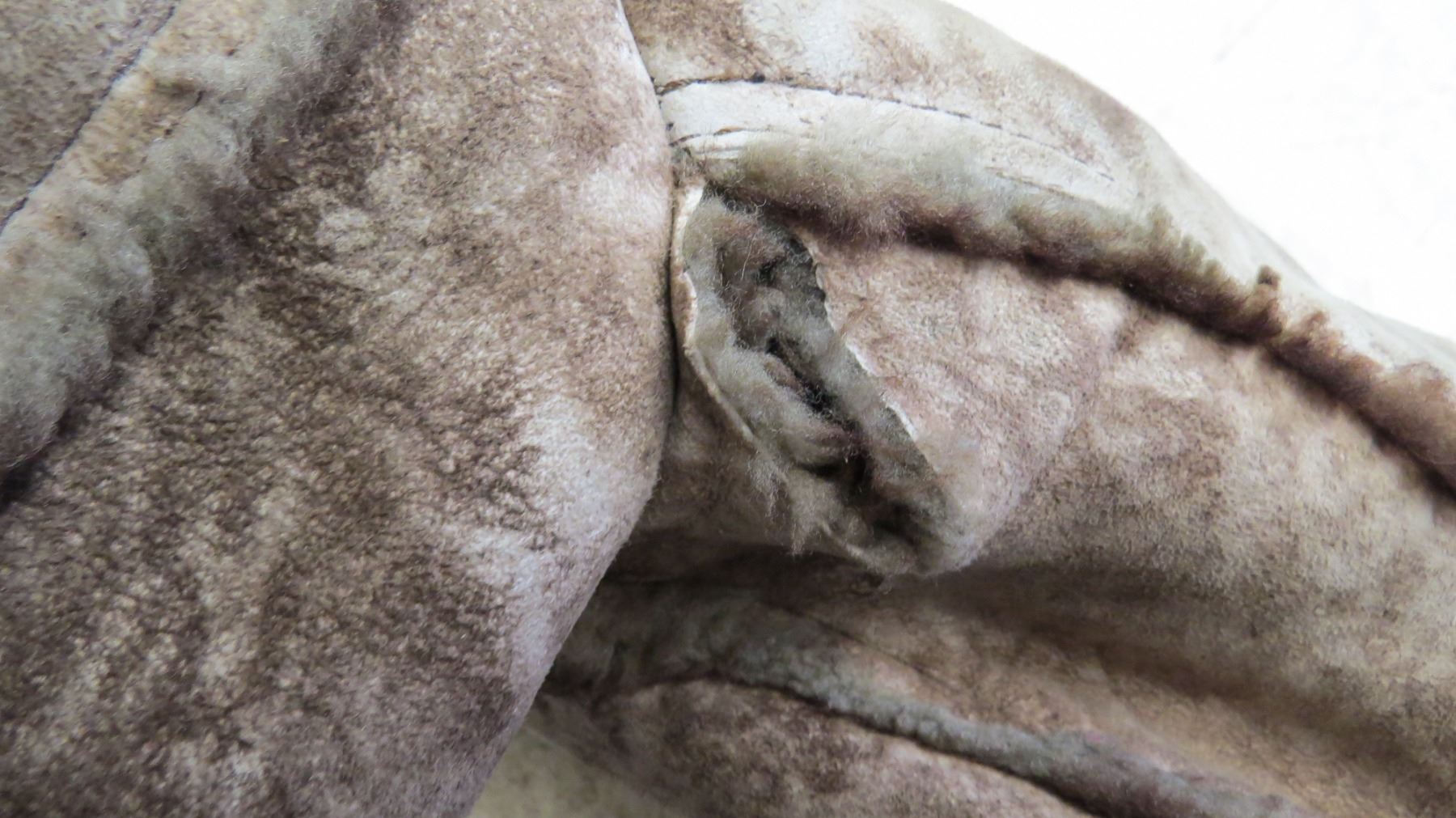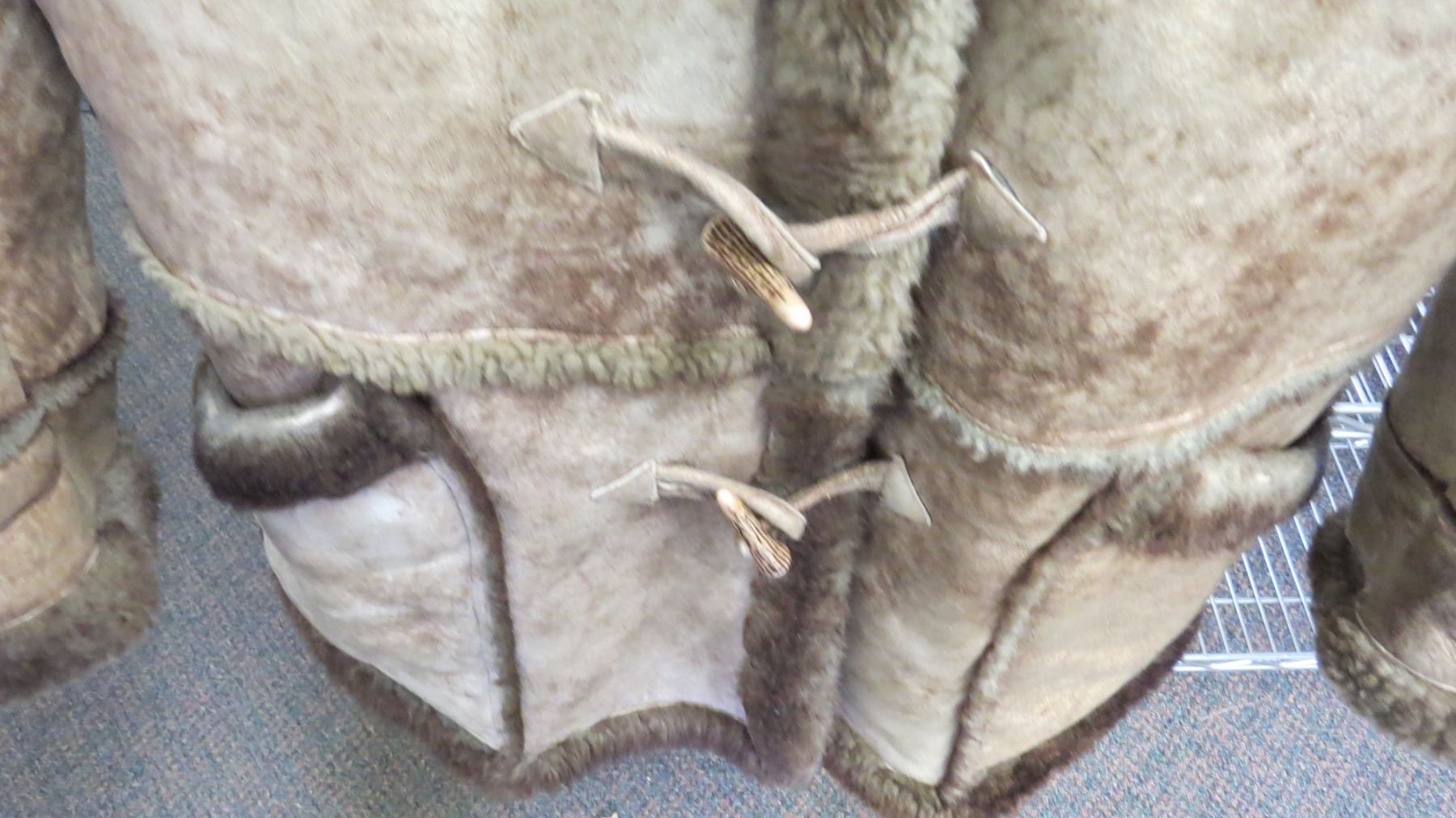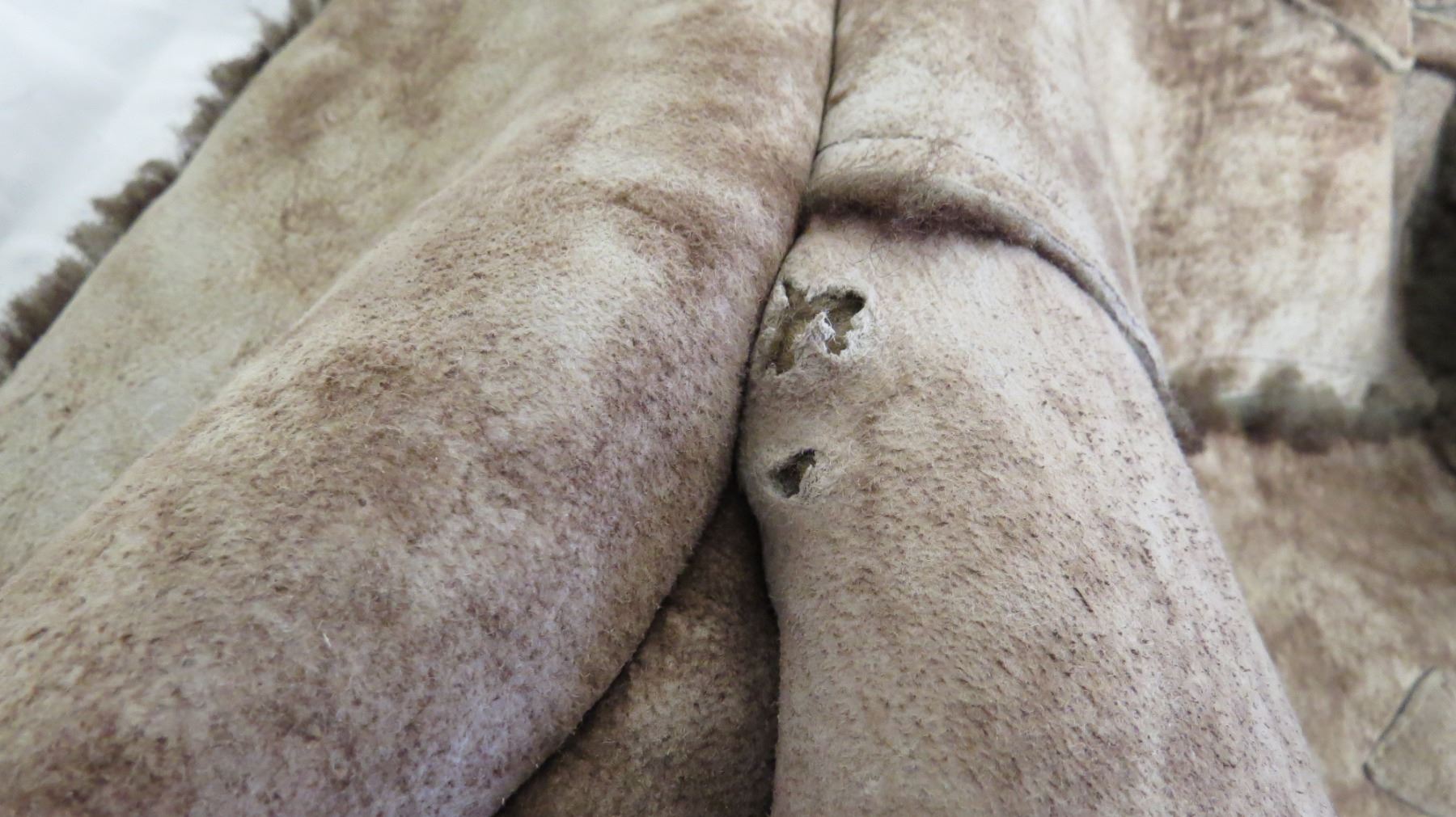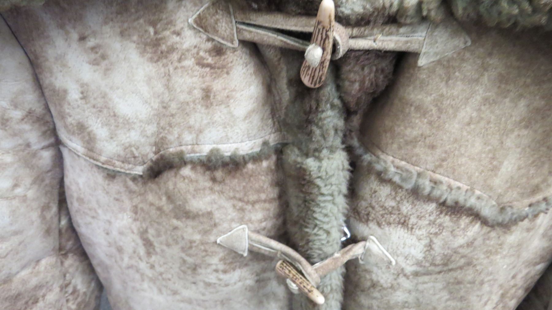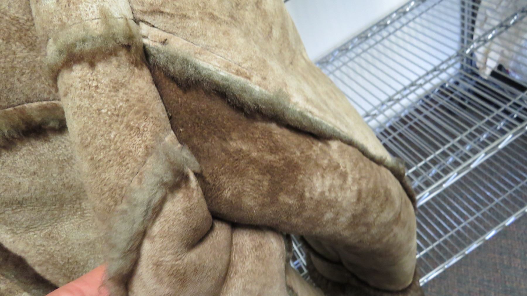 Vintage Lantry Leather brand mens fur coat - zipper working- size looks like a medium - has one hole by underarm