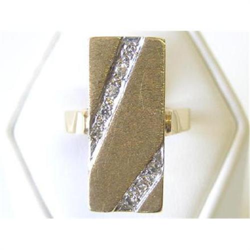 This unique vintage 14K gold ring makes quite an impression. Features a large rectangular shape with brushed surface decorated with diamond chips.