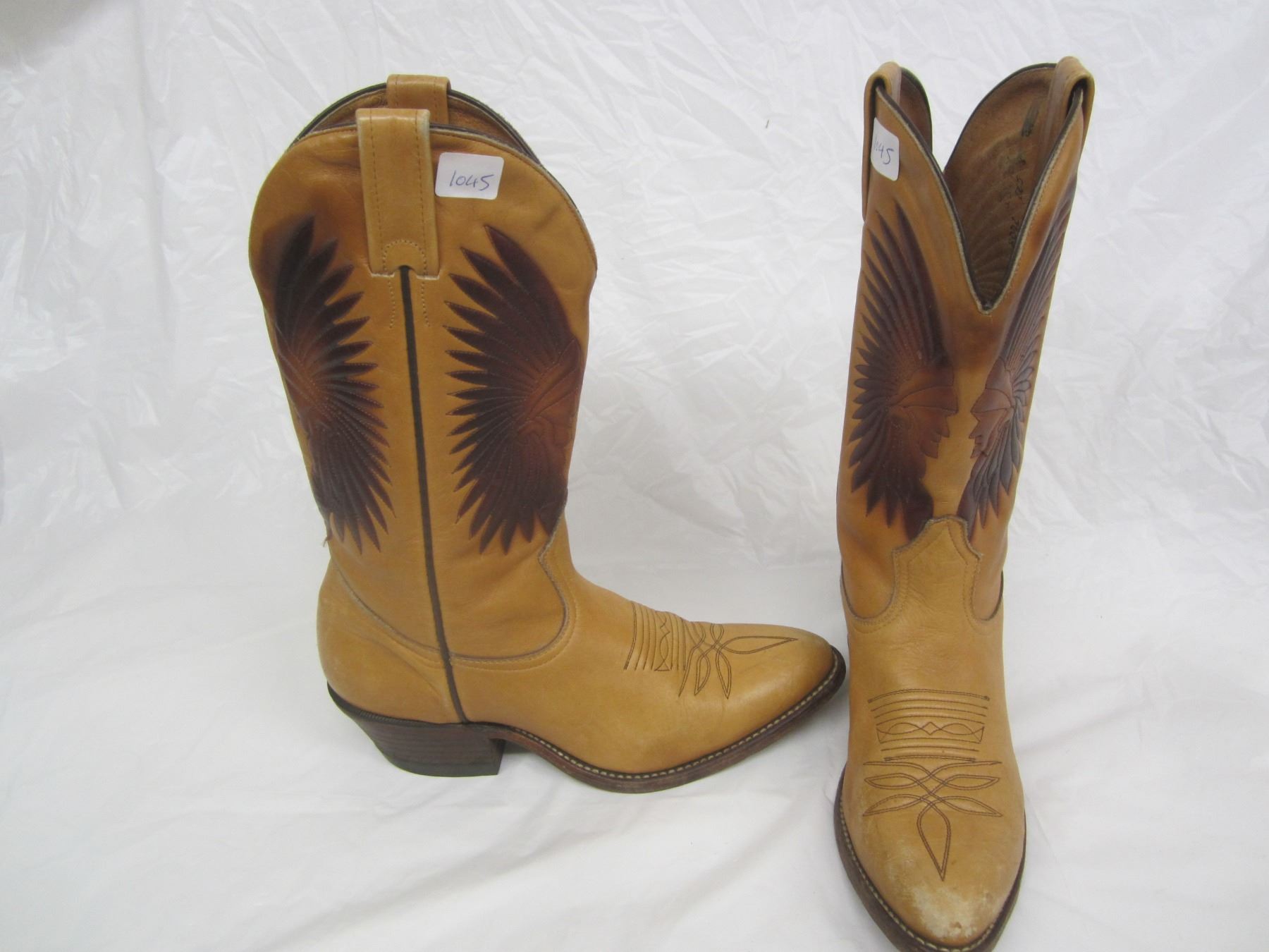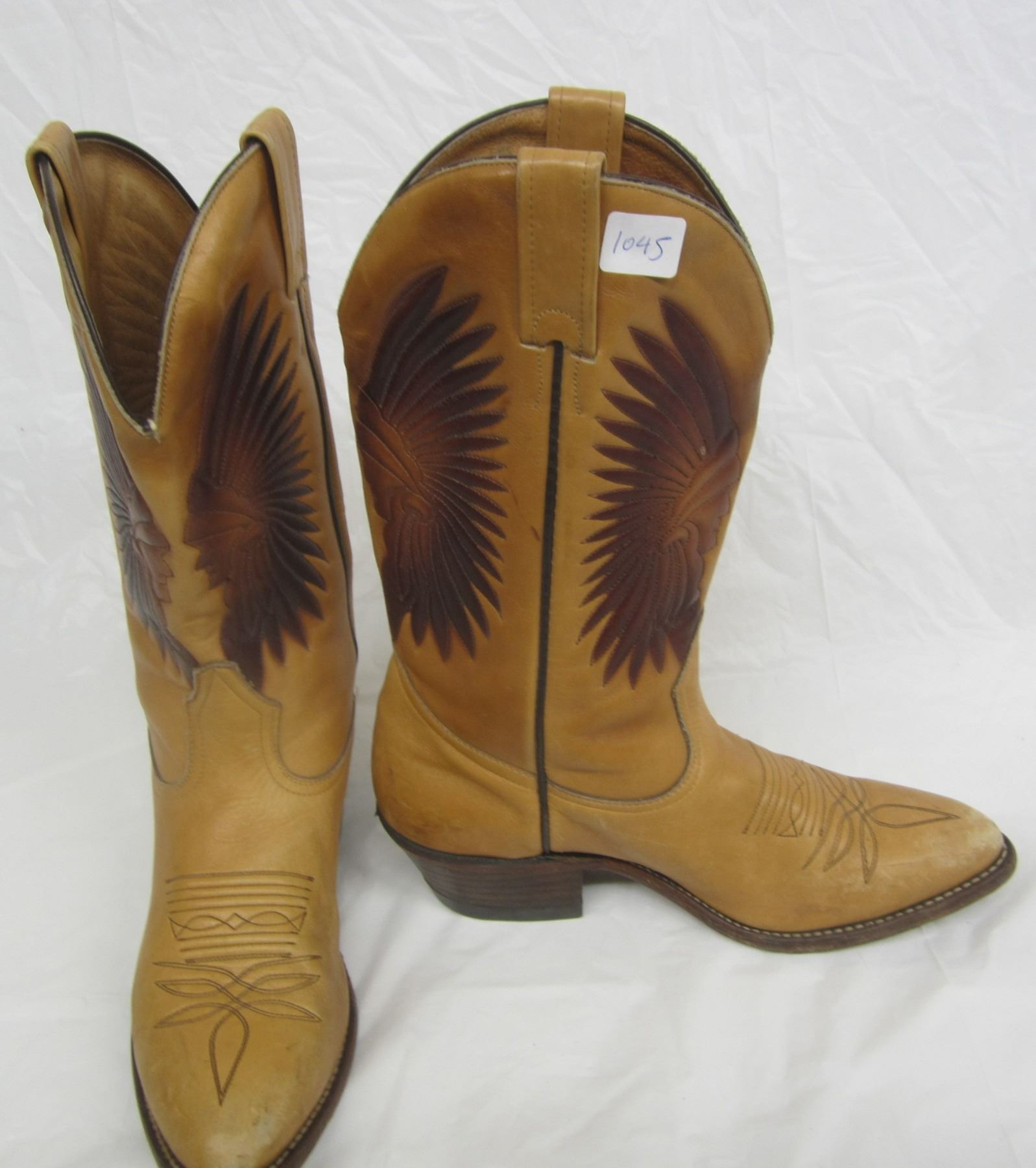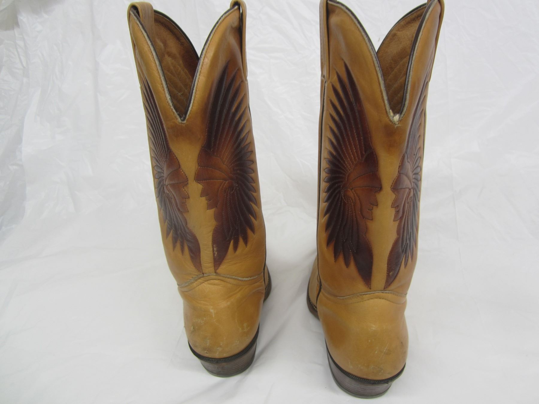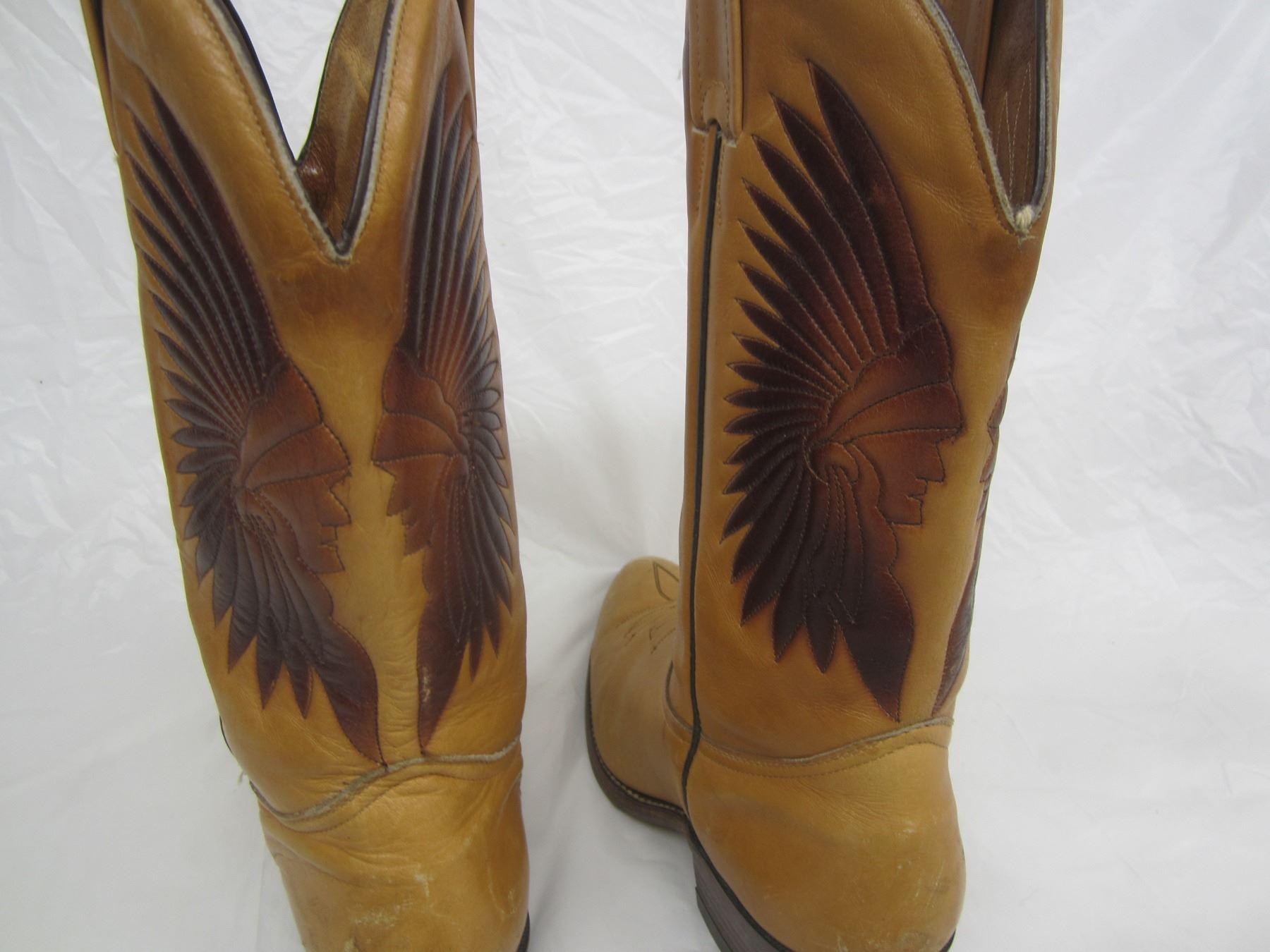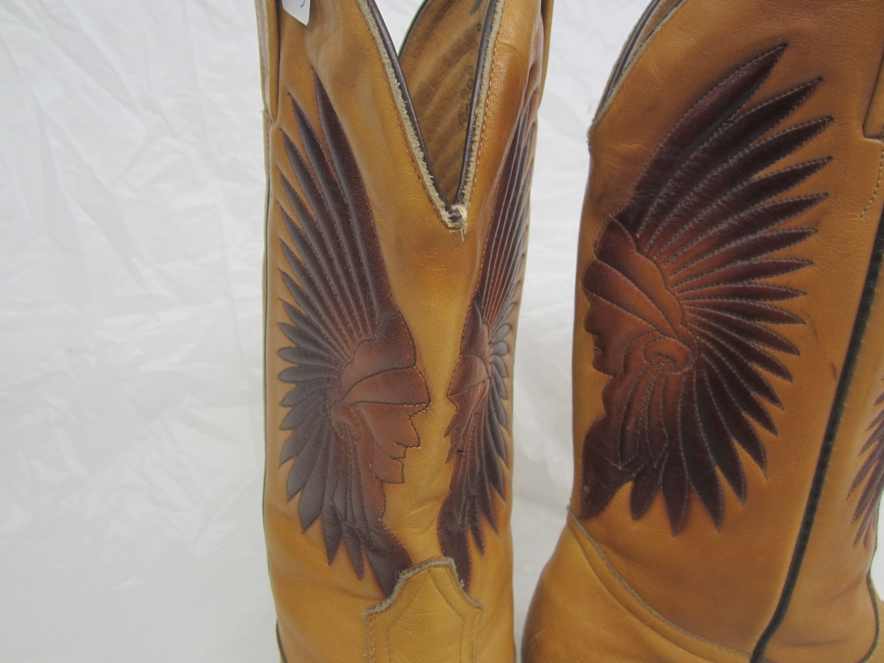 Vintage Leather Cowboy Boots with Native Chief Design size 8