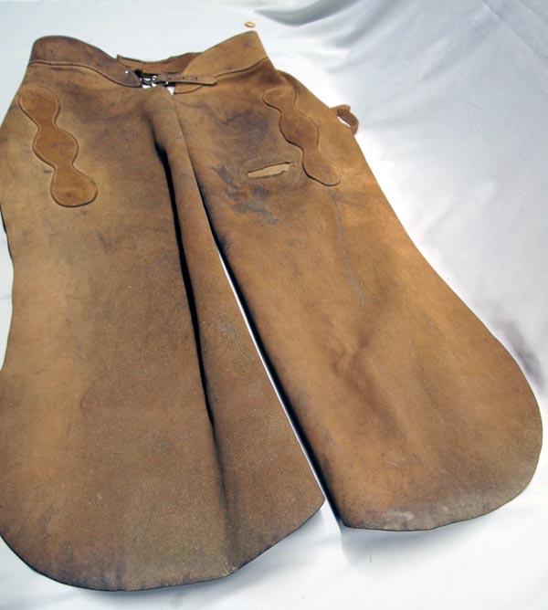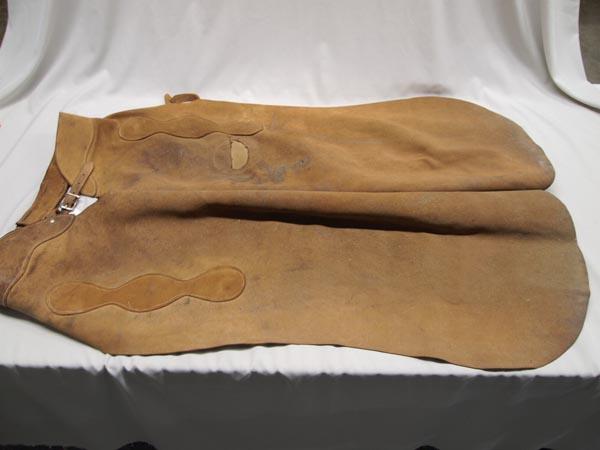 Vintage Leather Cowboy Chaps. Measure approx. 40.5''L x leg 20 1/4''W. Buyers Pay Actual Shipping and Handling Charges(see terms and conditions for more information).