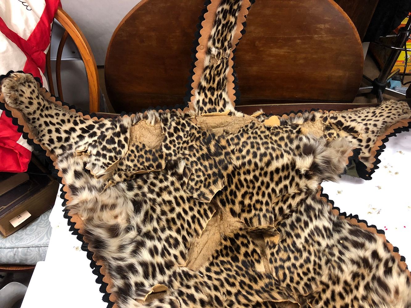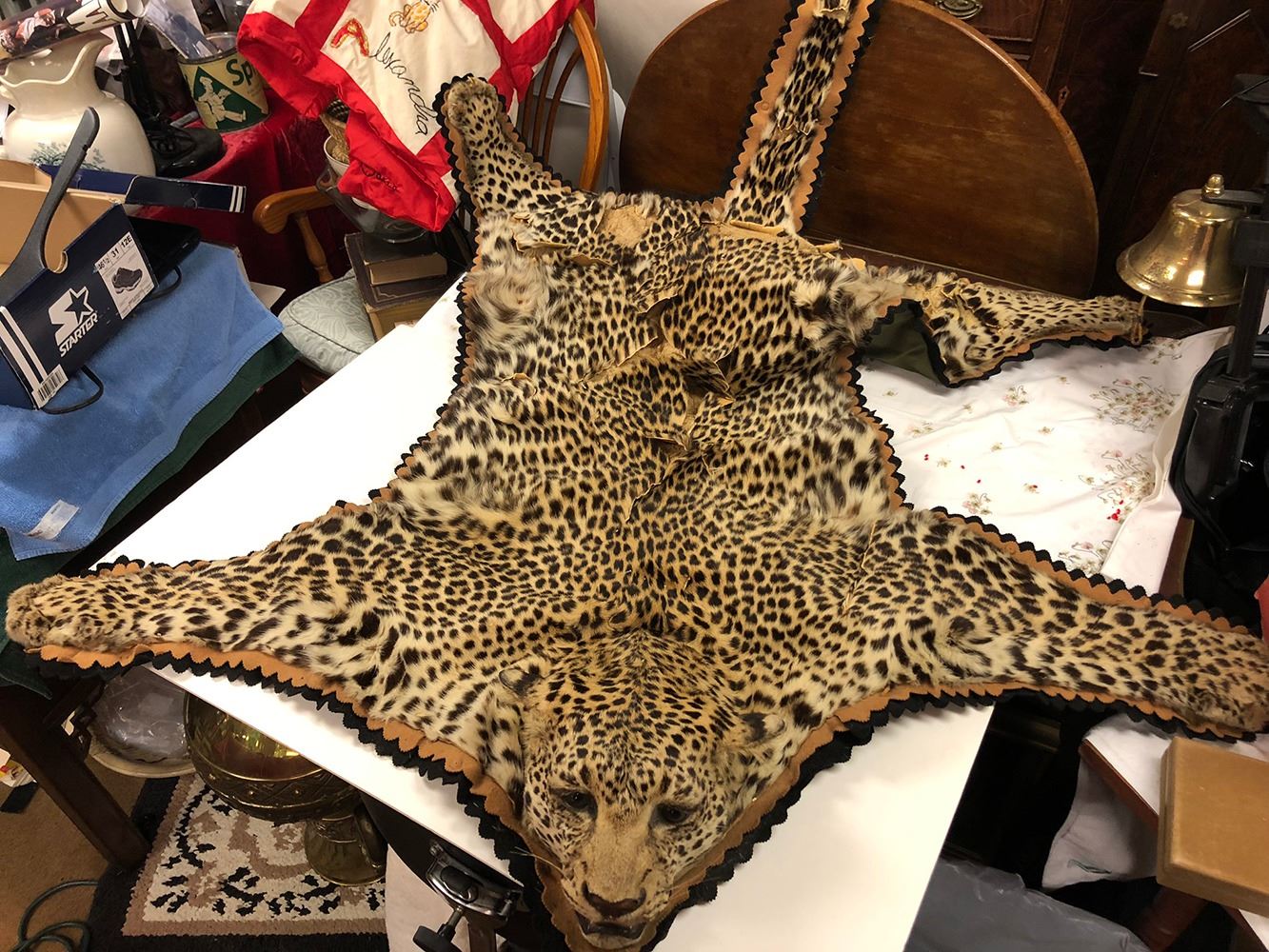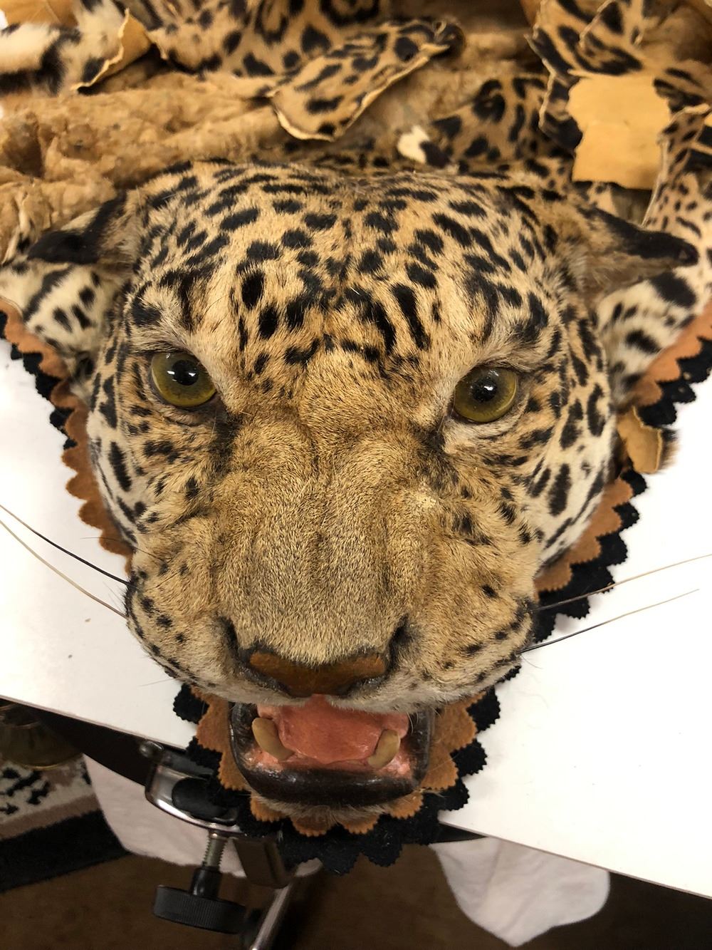 Vintage Leopard Rug. The head is in good condition, the rug will need restoration and repair. Taxidermy by Jonas Brothers Taxidermy, Mount Vernon, NY. Being sold as is, it is the buyer's responsibility to check their local and state laws regarding shipping and delivery. This is vintage taxidermy, c. 1960s.