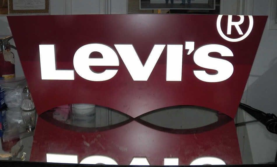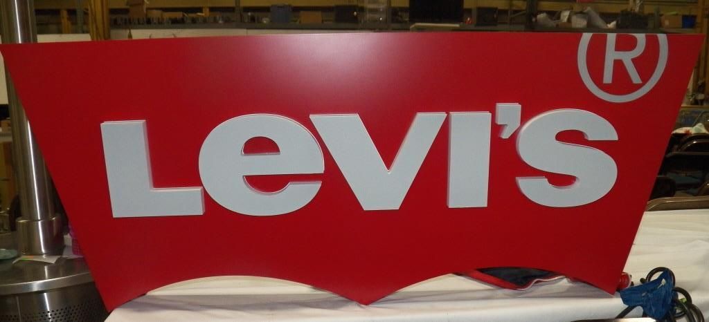 Electric Levi Store Display sign approx 48" long x 20" tall x 5" deep including mounting brakets.This sign is new in box only taken out for picture to be taken