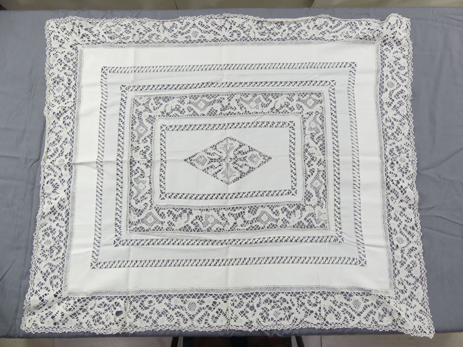 Vintage Linen & Handmade Bobbin Lace Teacloth/Table Topper, from Rockefeller Estate