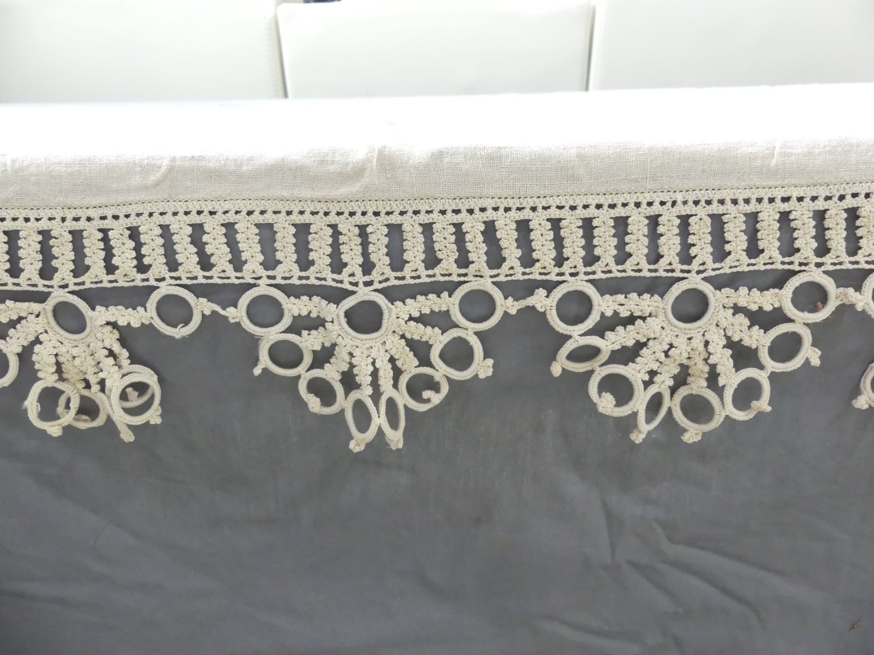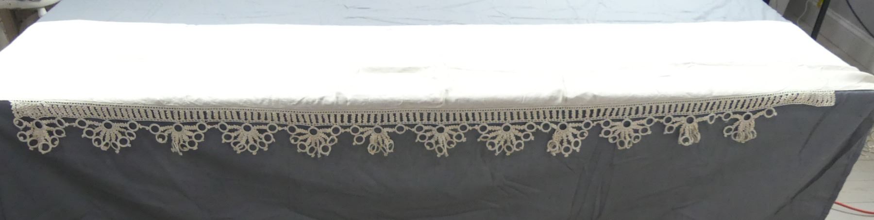 Vintage Linen Mantel Scarf with Hand Made Trim