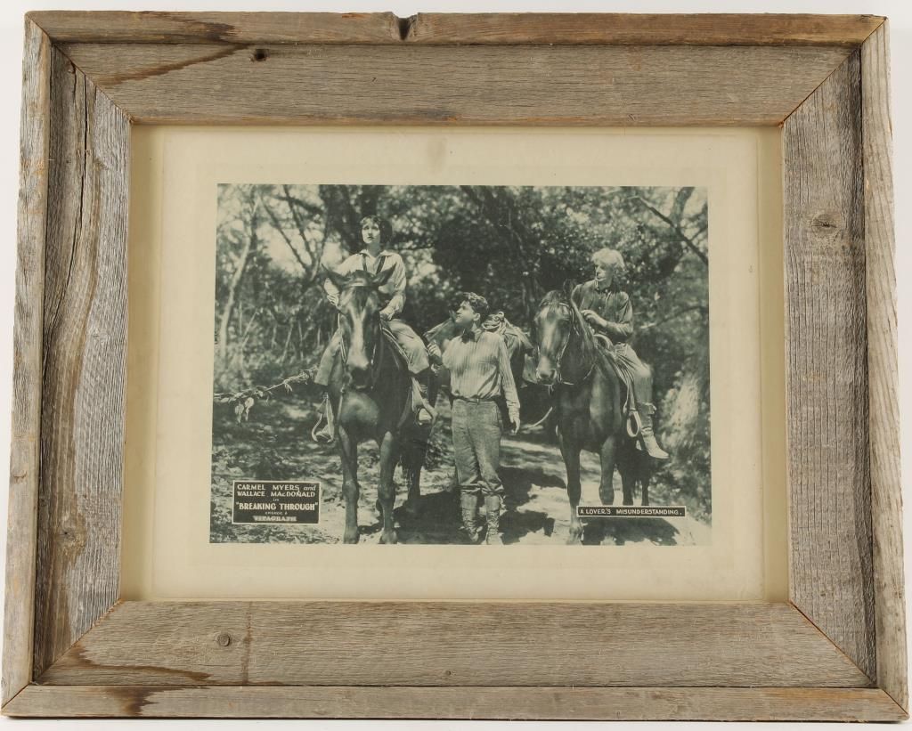 From Silent Movie Era. "Carmel Myers & Wallace McDonald in Breaking Through, Episode 6 Vitagraph". Barnwood frame 20-1/4" wide x 16-1/2" high.