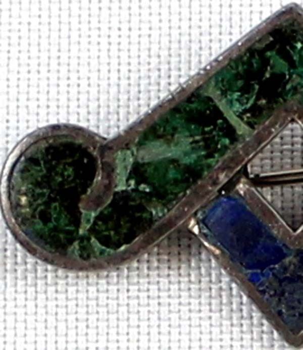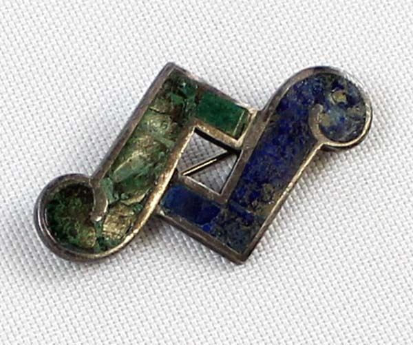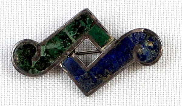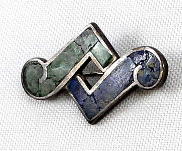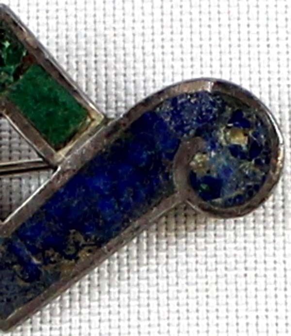 Vintage Los Castillo Mosaico Azteca Sterling Turquoise & Lapis Pin, measures 1.5'' x .75'', hallmarked