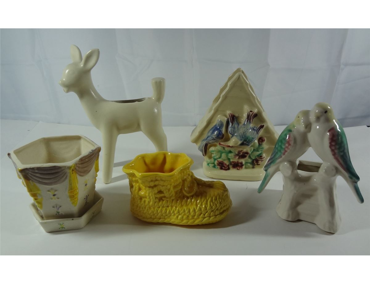 Vintage lot of five planters including a deer and a bird. Est. $30-$40