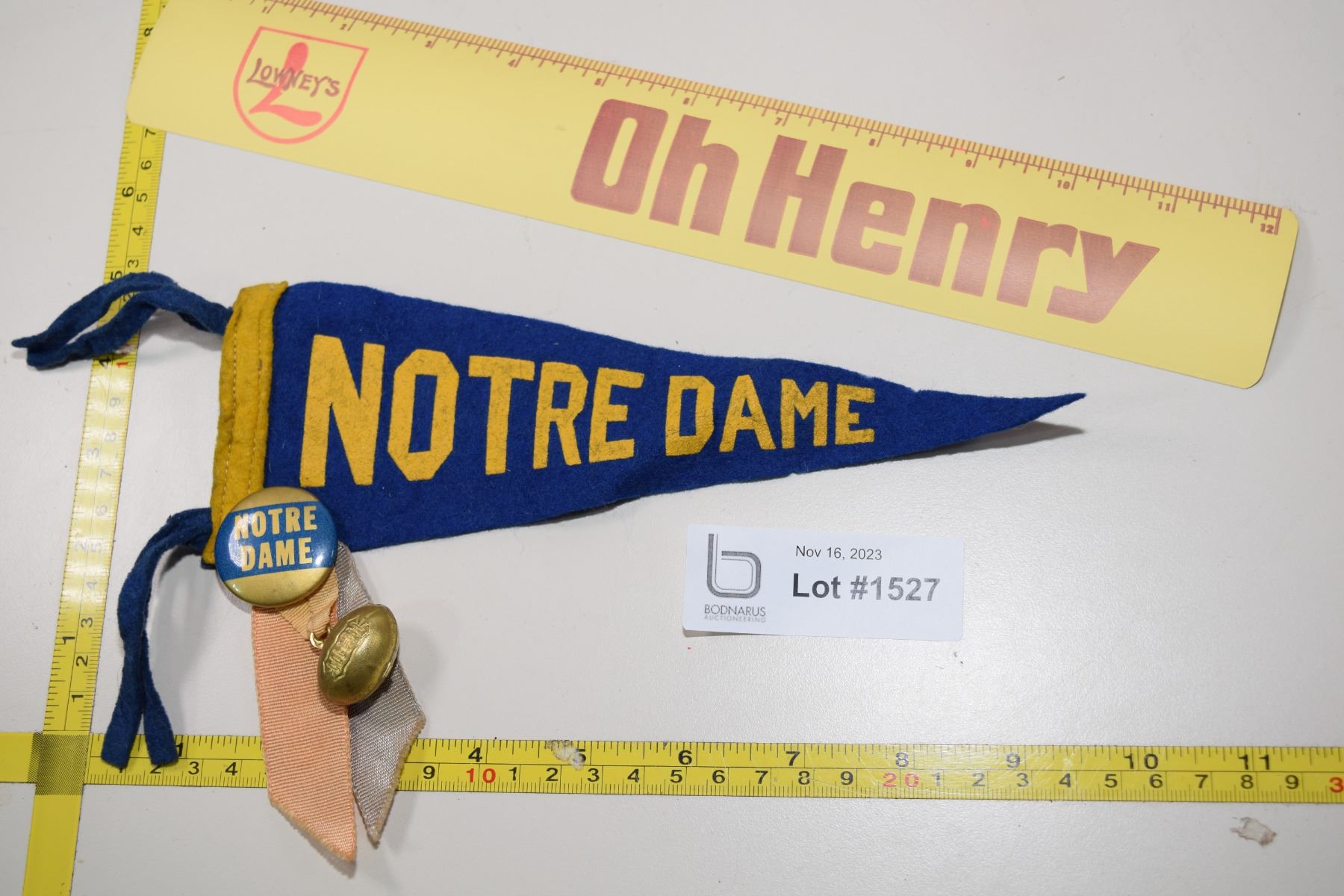 Vintage Lowney's Oh Henry Ruler + Notre Dame Football Items - Pennant