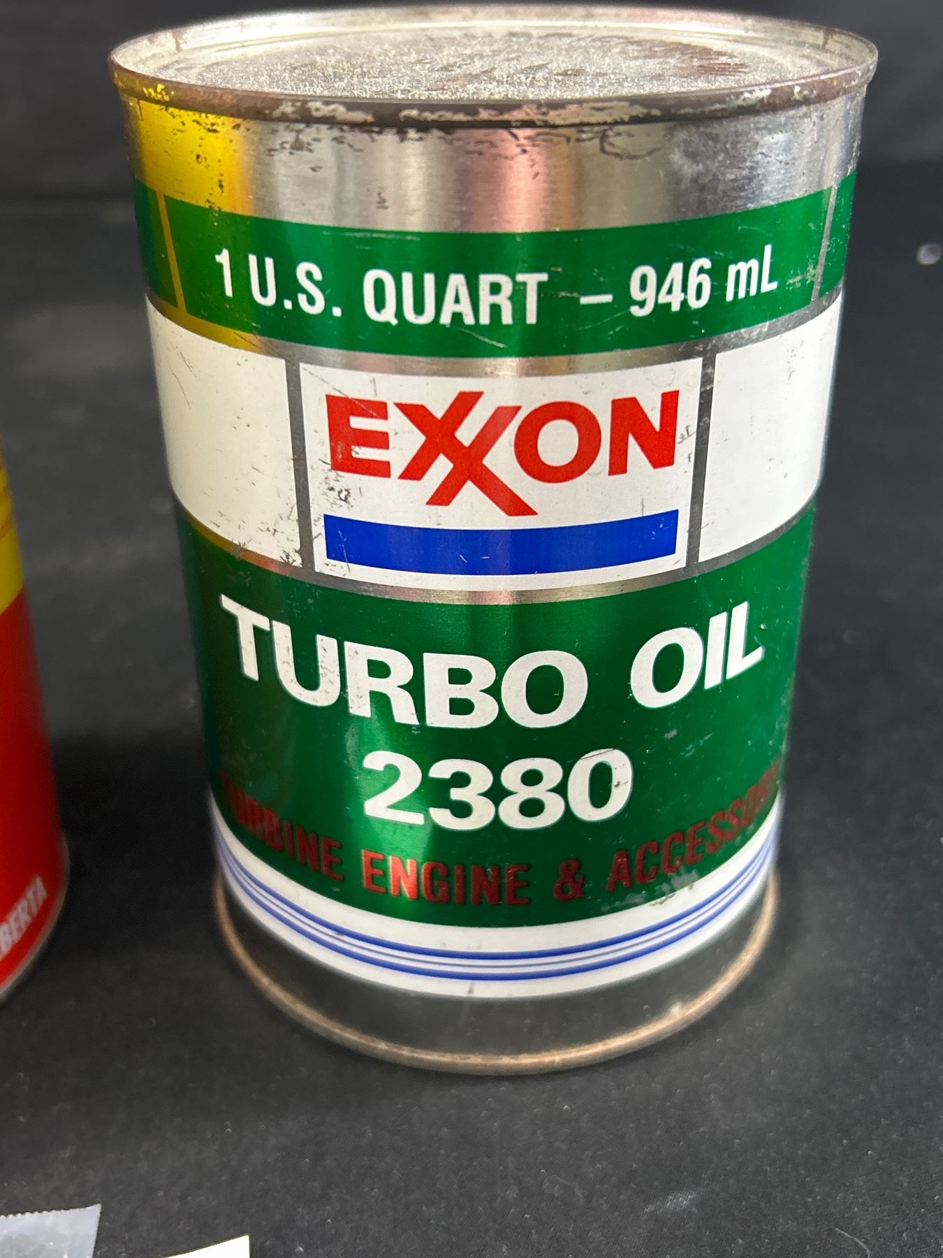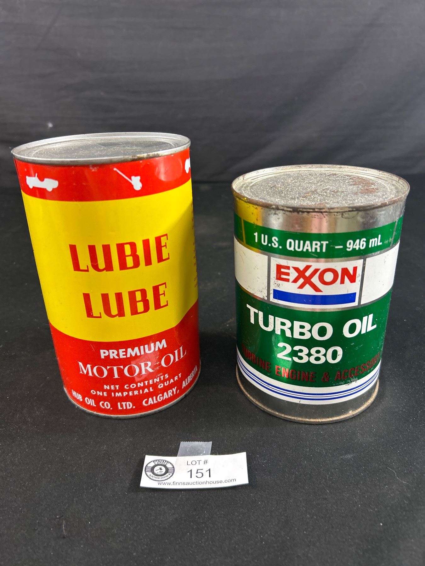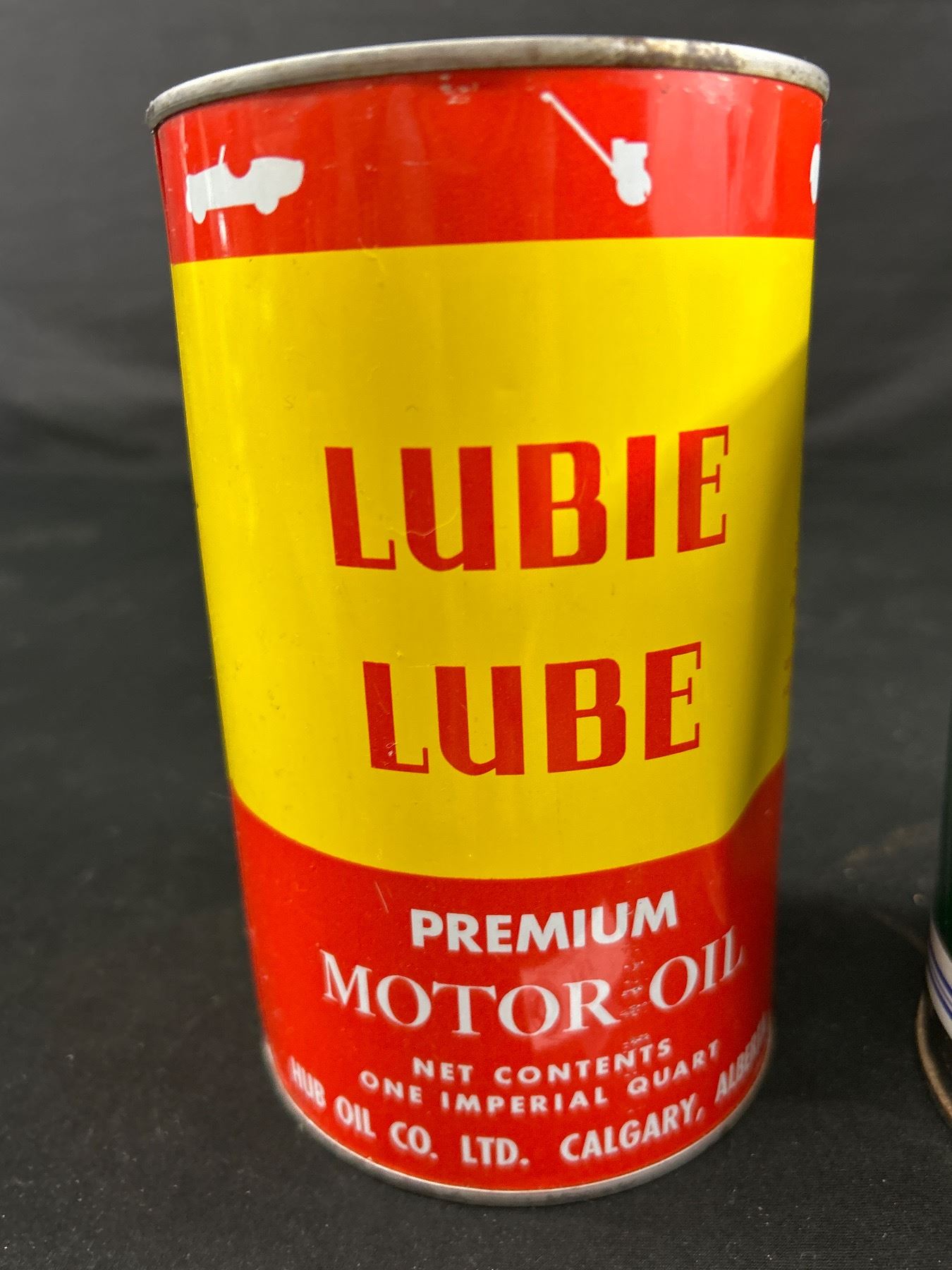 Vintage Lubie Lube, Hub Oil Co. Ltd. Calgary, Alberta Tin w/Contents & Exxon Turbo Oil Tin w/Contents