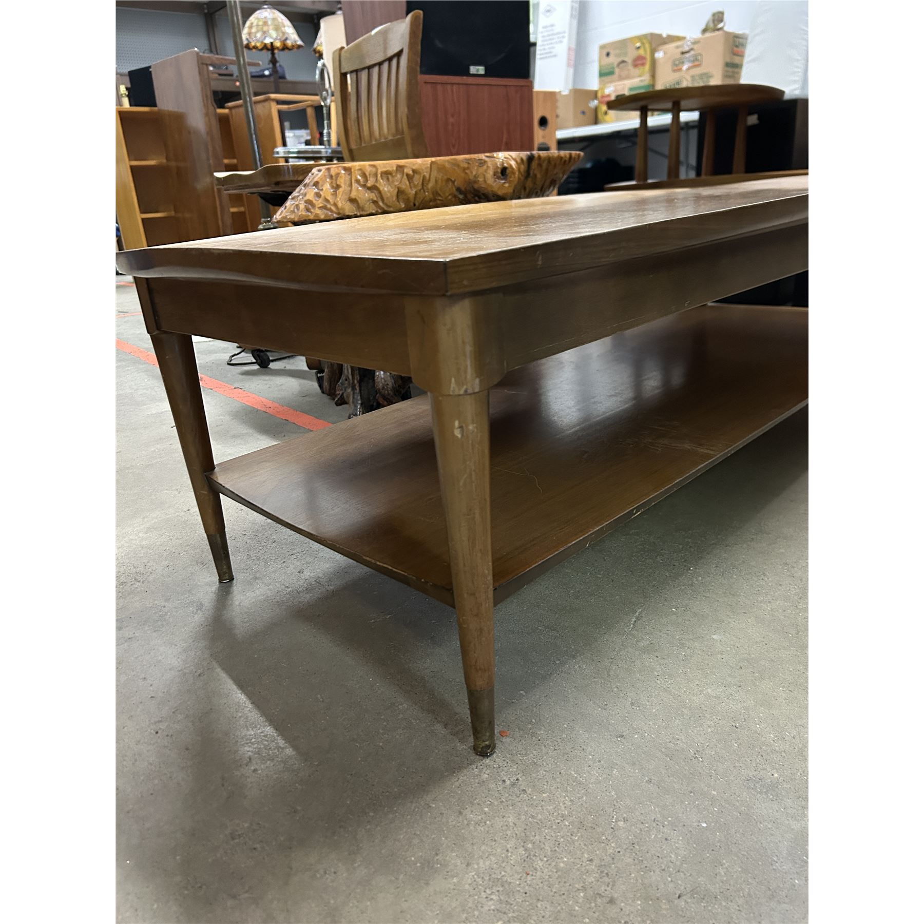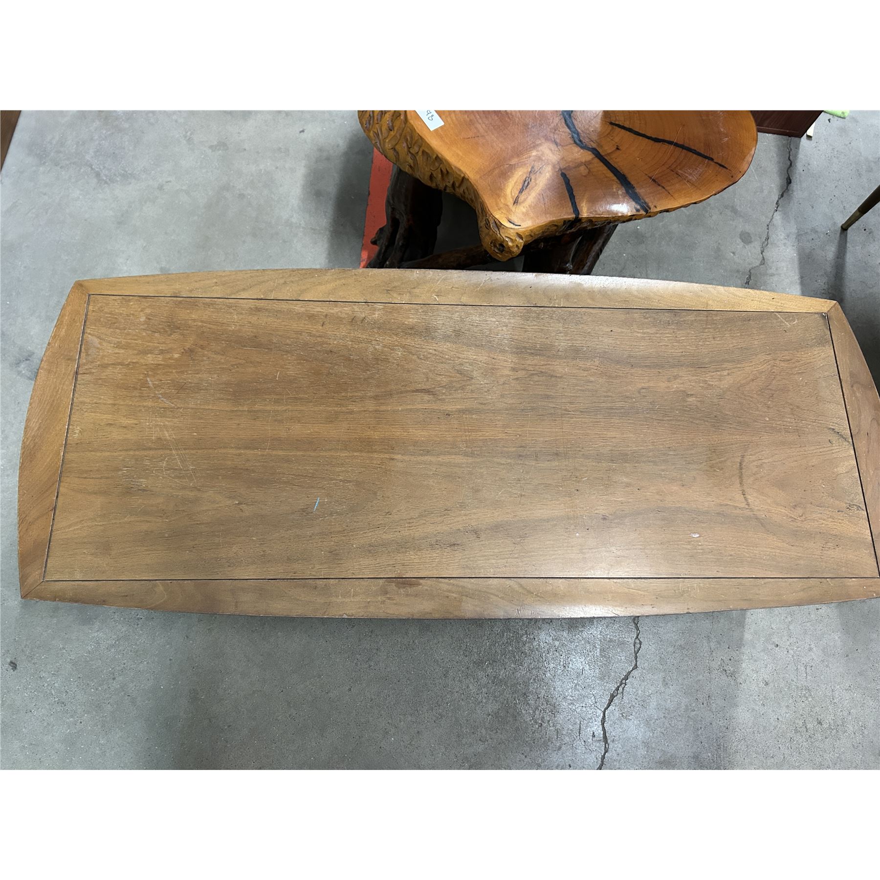 21” x 51” and 15” tall. Needs refinishing . Sturdy.