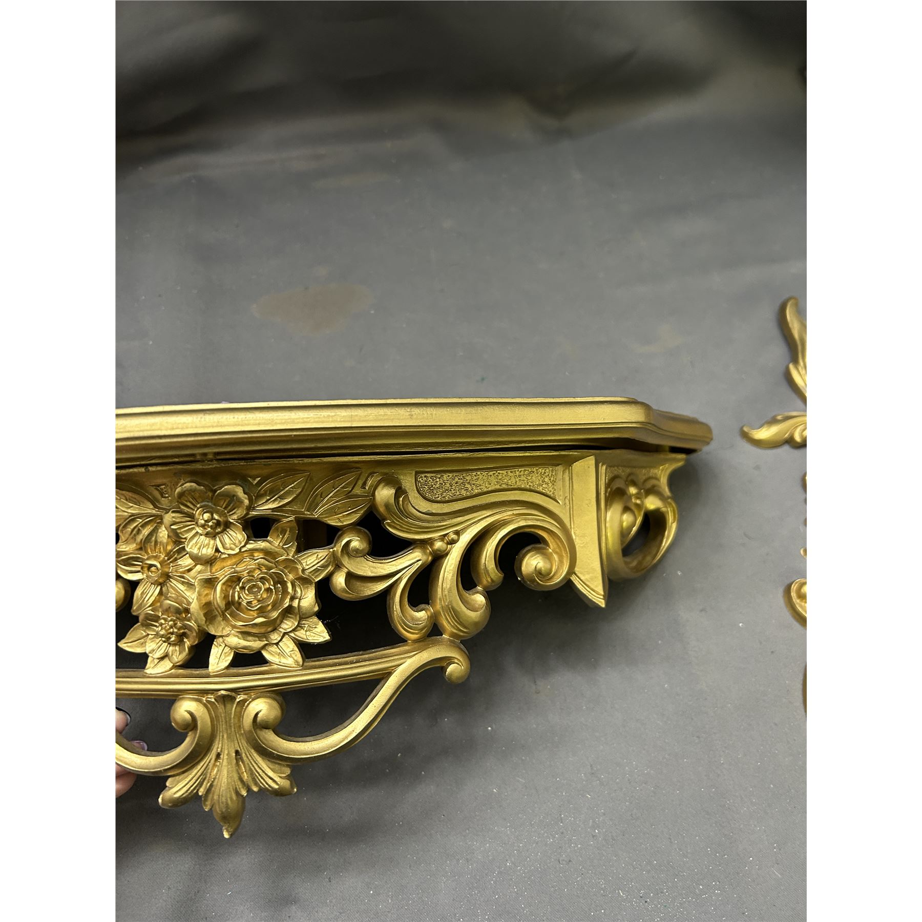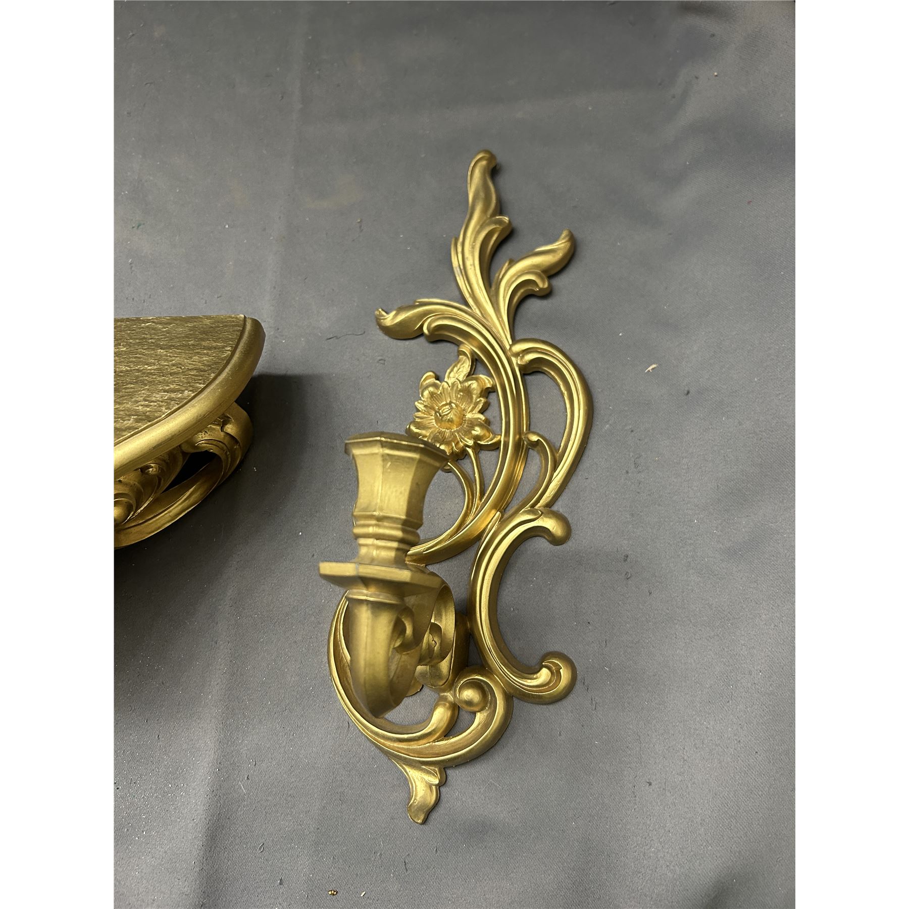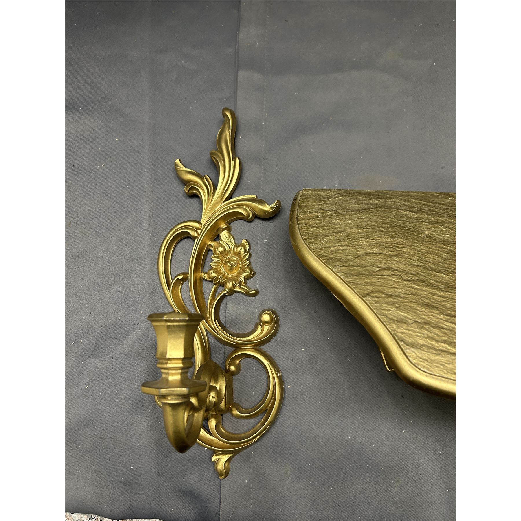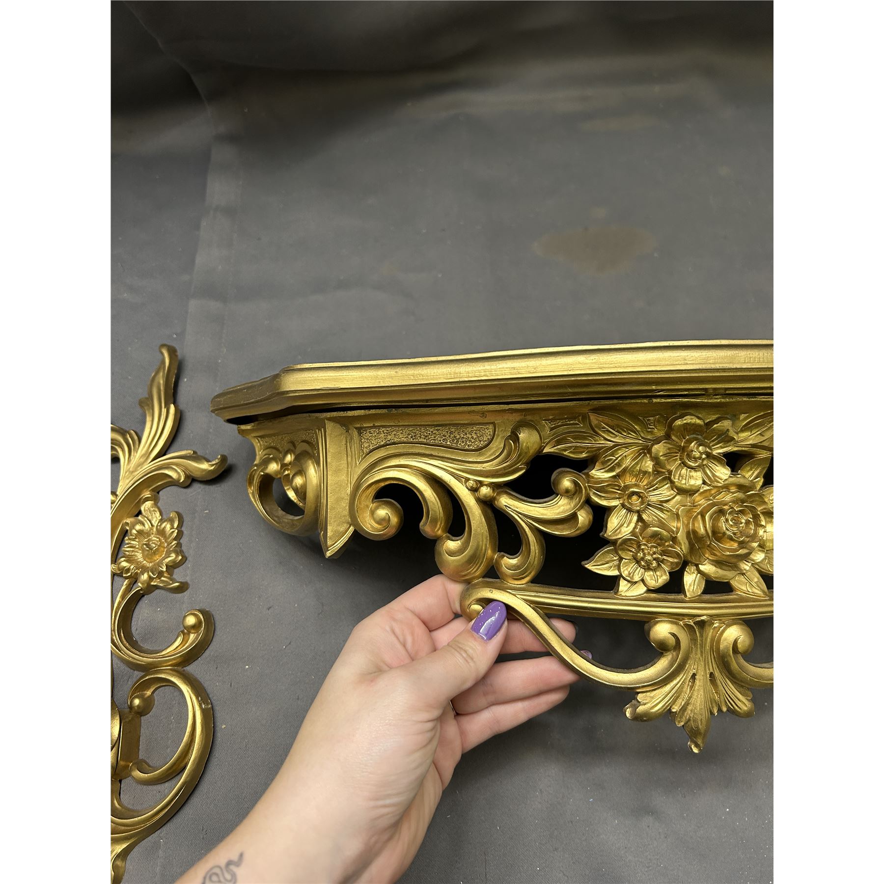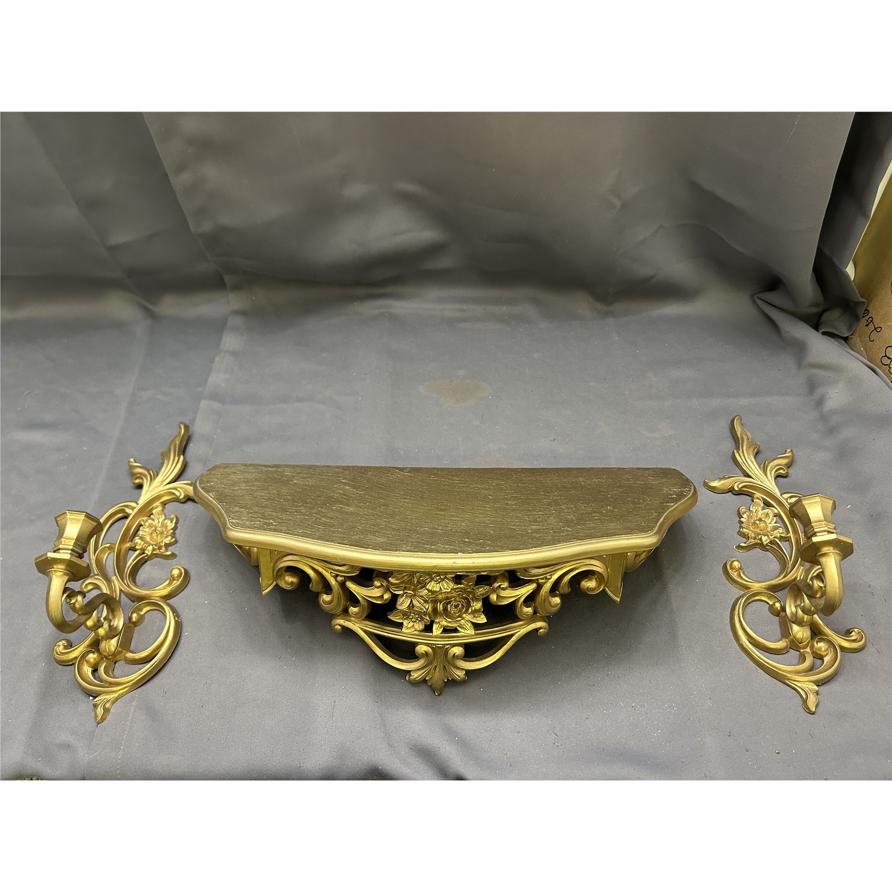 Vintage MCM Shelf and Sconces Ornate Gold Tone Wall Set Dart Syroco