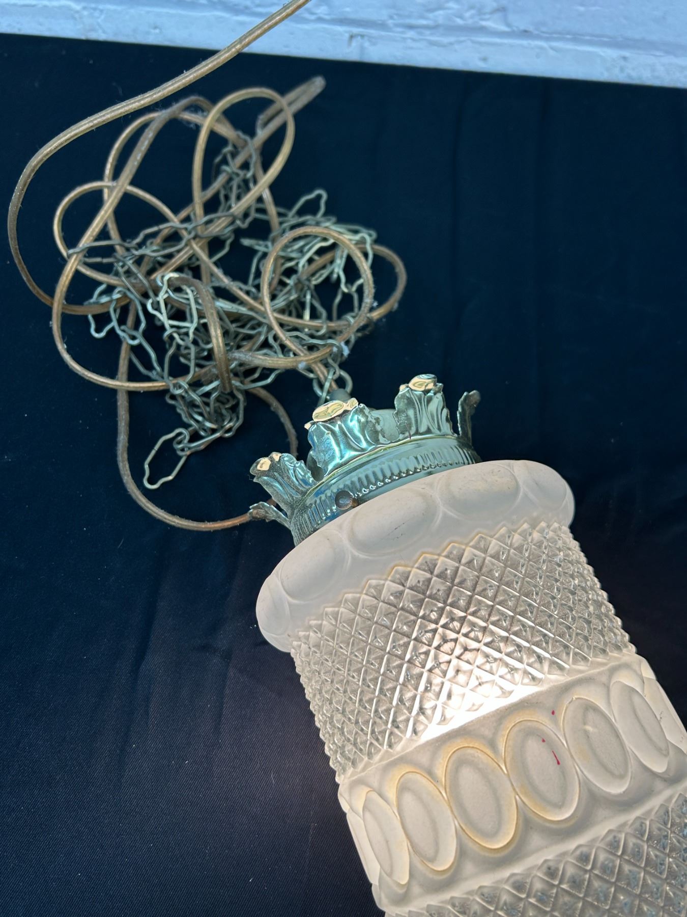 some dirt and scuffs. about 15" long including metal top and bottom hardware.