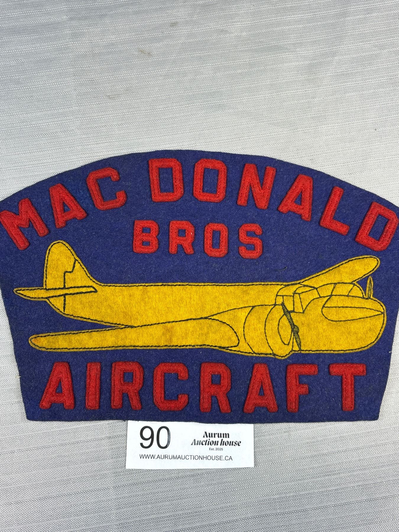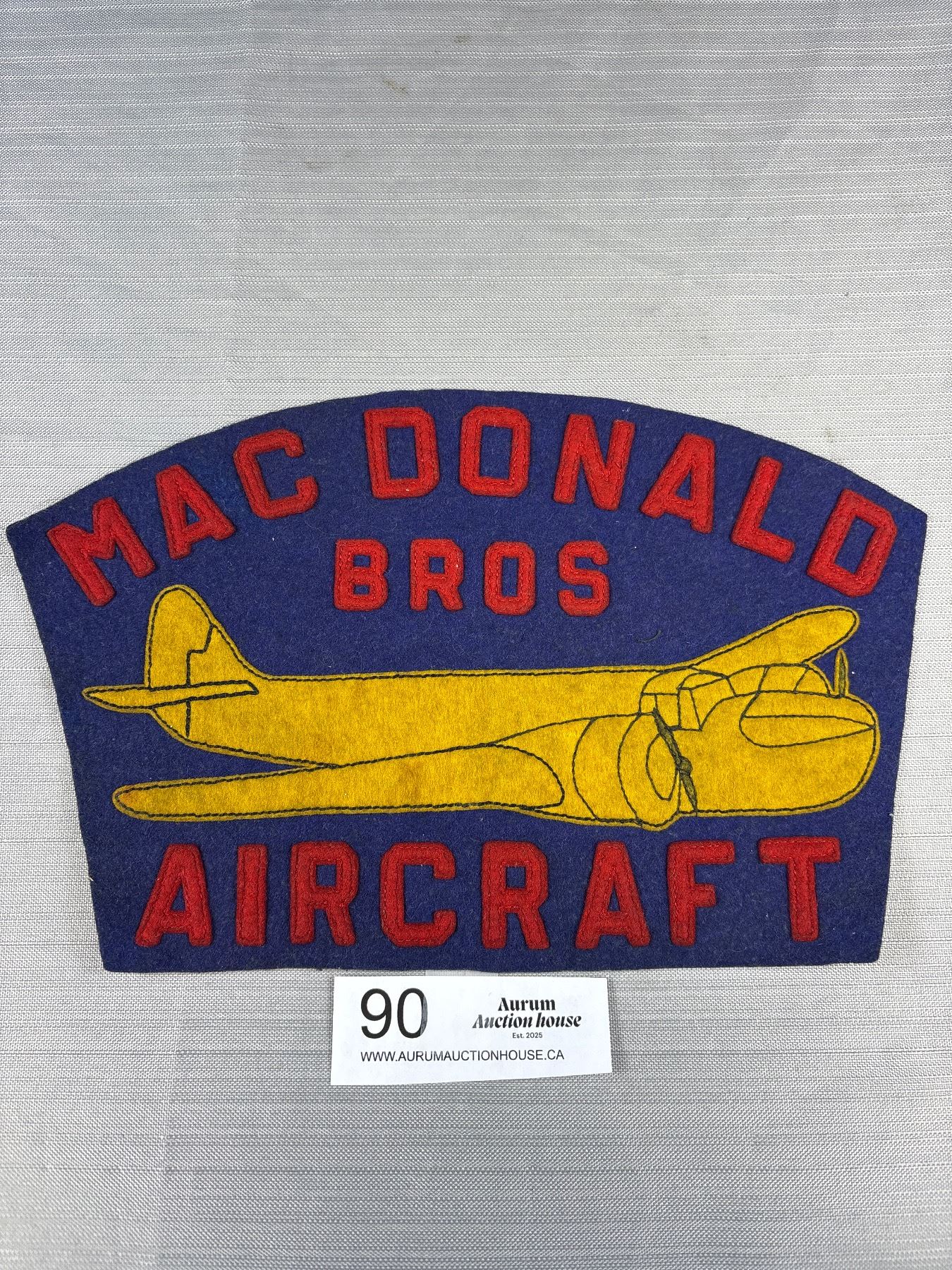 Vintage Macdonald Bros Aircraft Jacket Patch 10" Wide 6.5" Tall