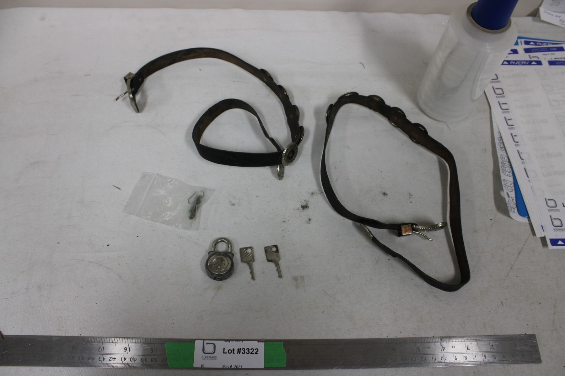 Vintage Made in USA 6-6 Lock & Key 2 Leather Straps and Golf Club Earrings