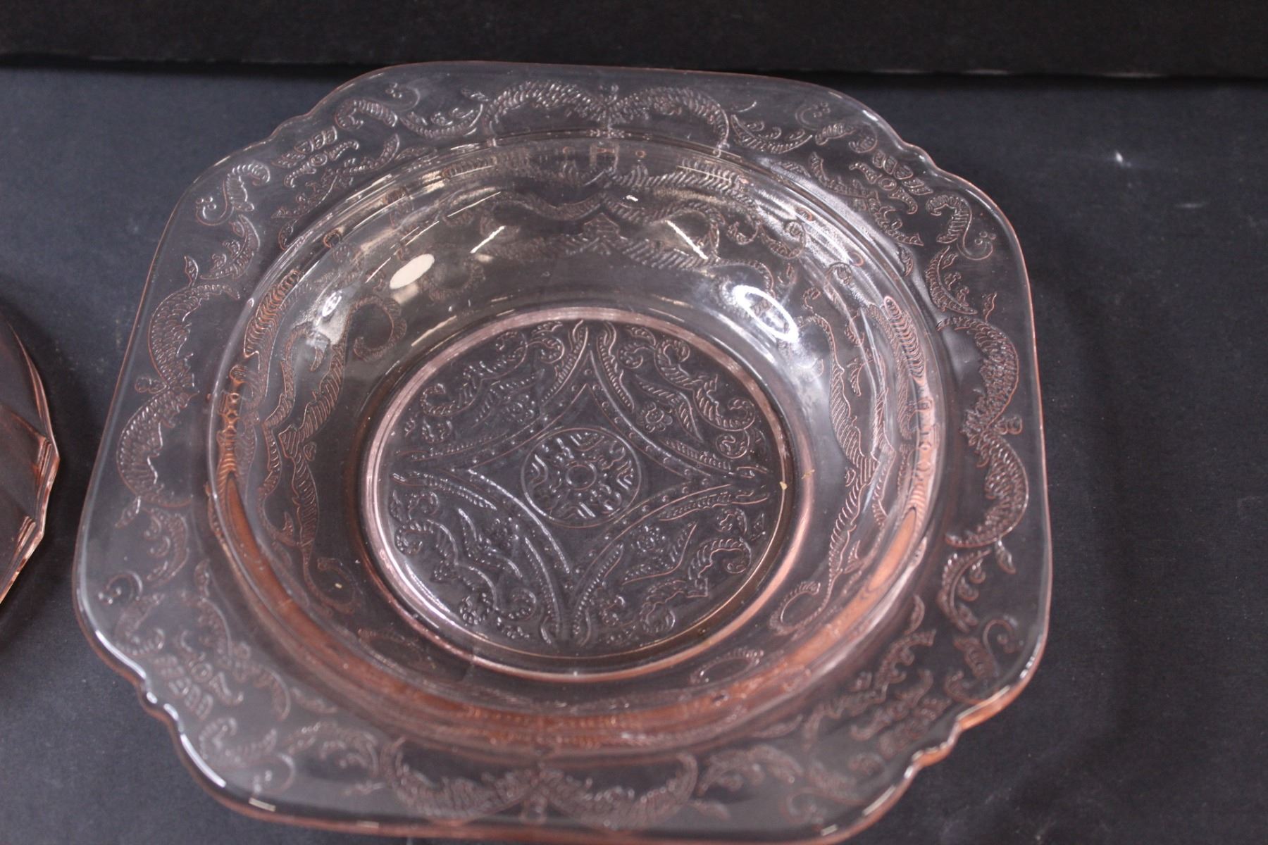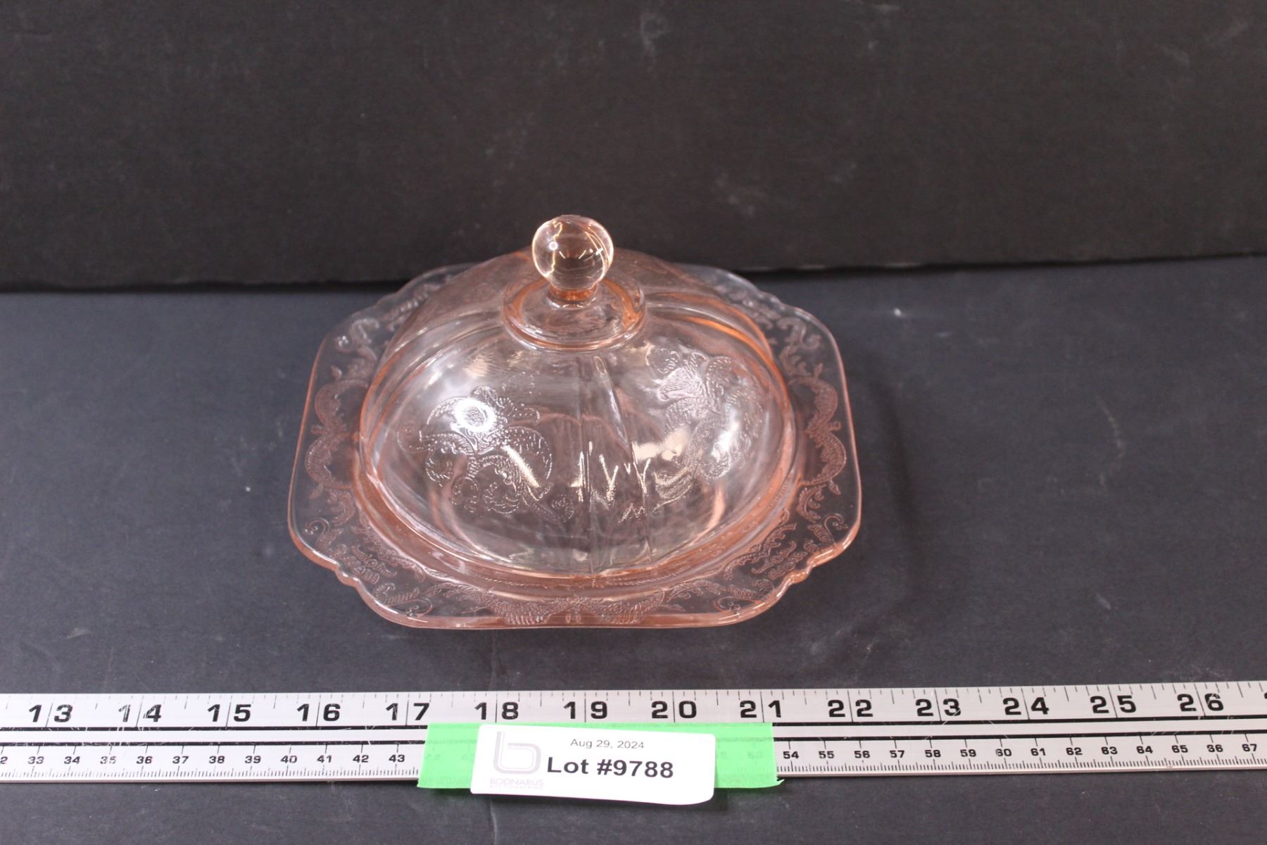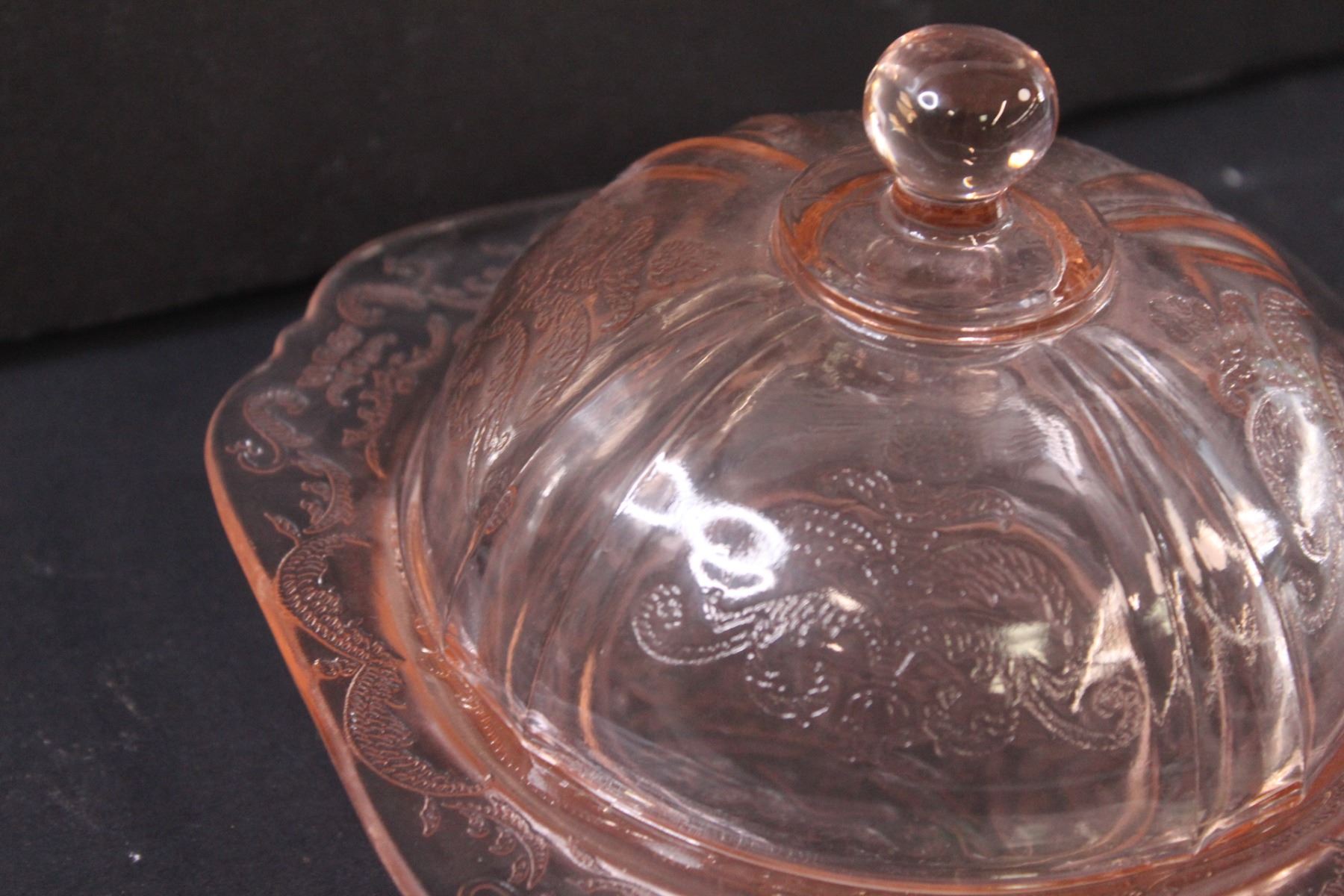 Vintage Madrid Style Pink Depression Glass Butter Dish - 7" x 4"