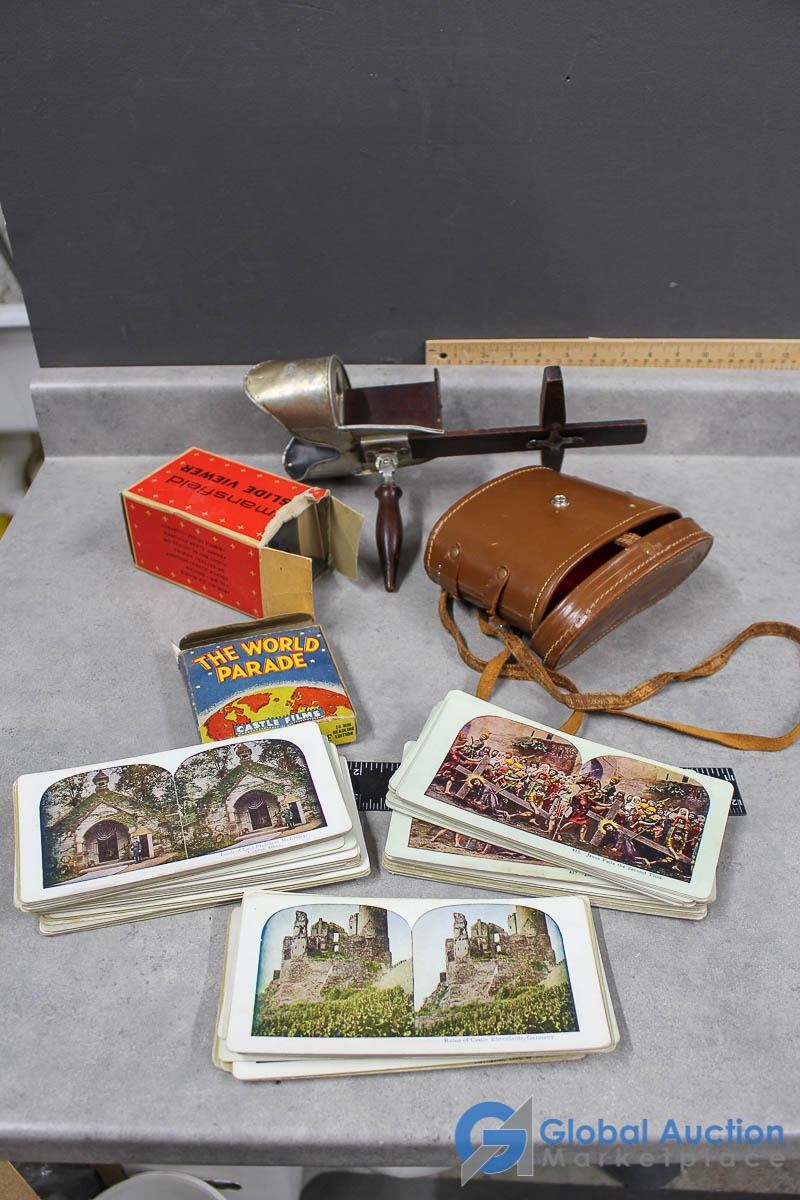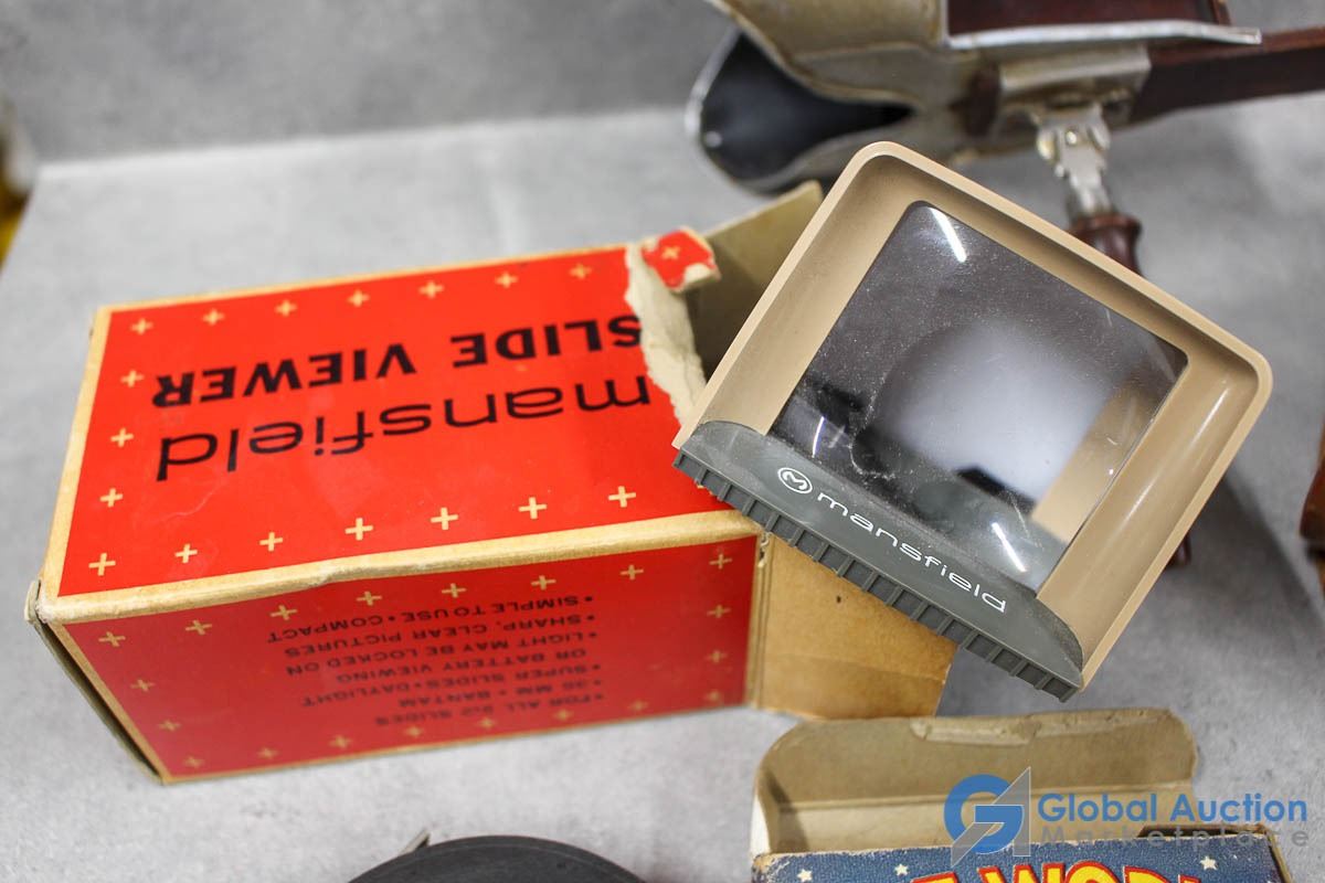 Vintage Magnifier/Slide Viewer, Vintage Slides & Binoculars in Case