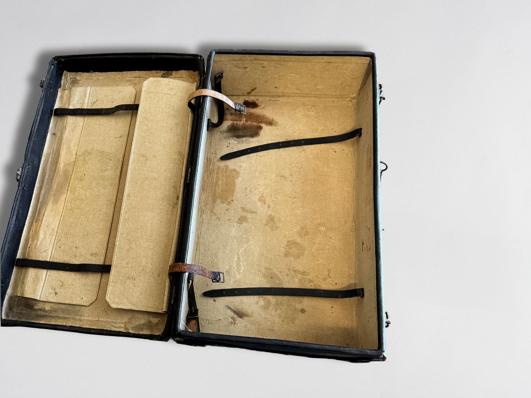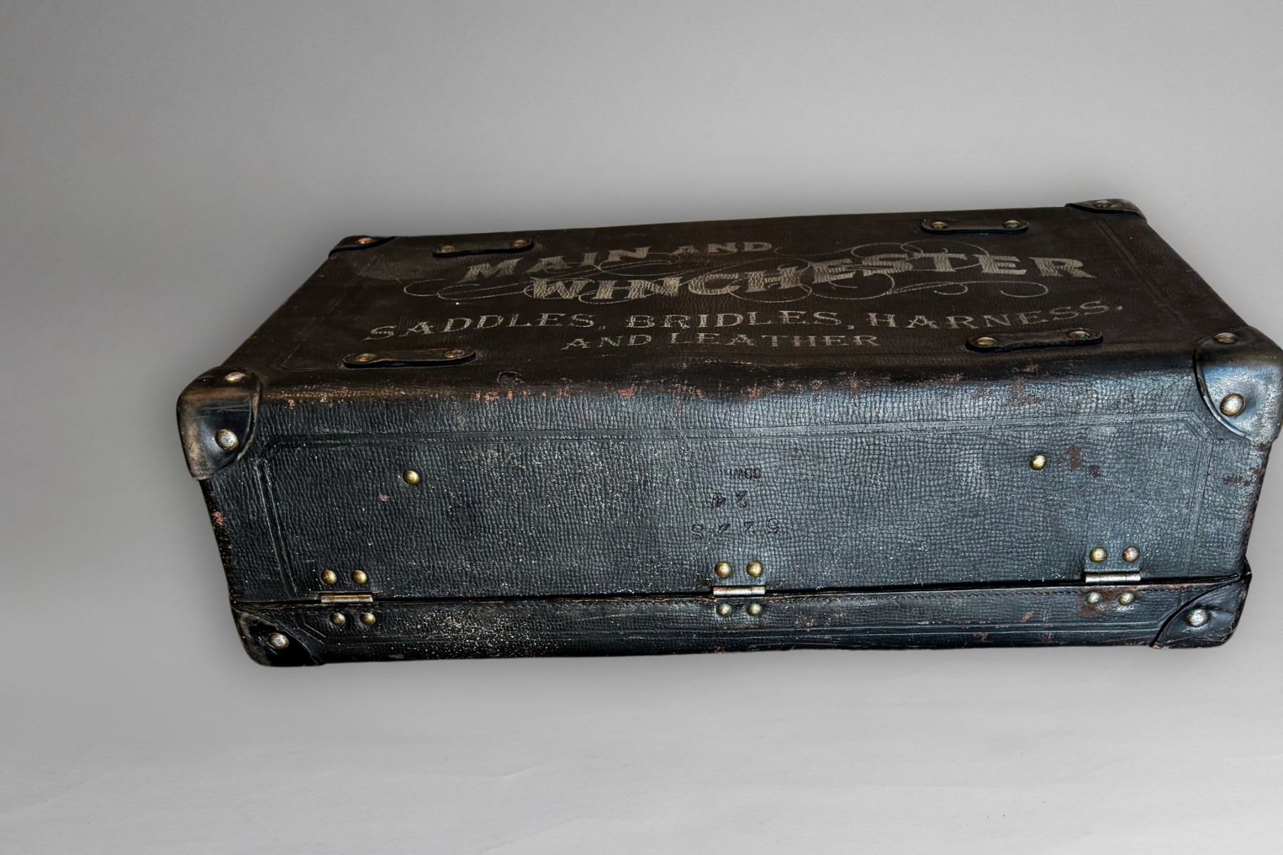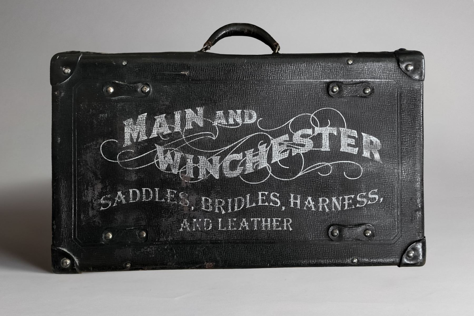 Rare vintage salesman's case marked "MAIN and WINCHESTER, SADDLES, BRIDLES, HARNESS, AND LEATHER" on both sides. A true classic. 25"W
