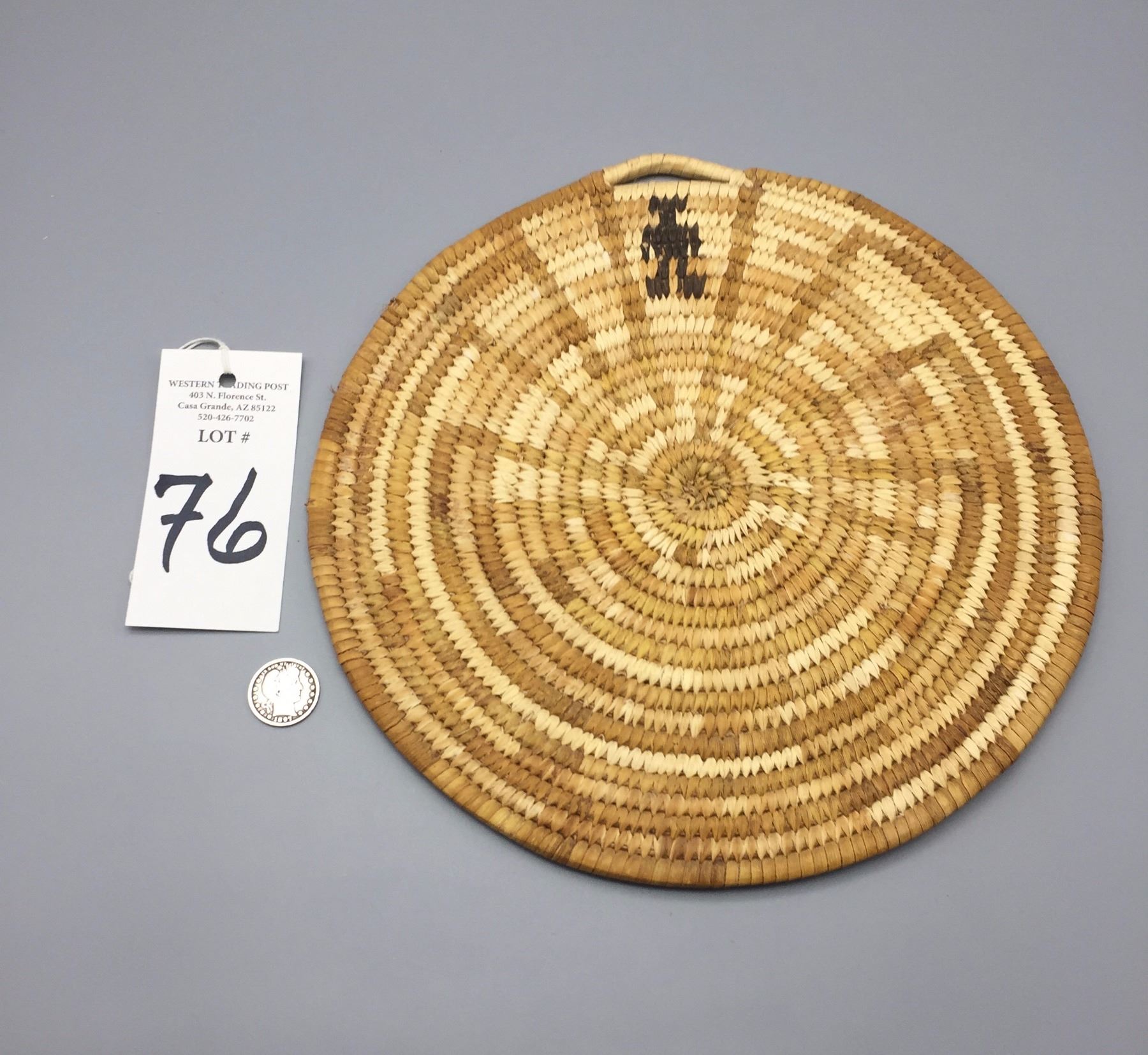 Maker: Unknown Tohono O’Odham weaver. Approx. Age: Vintage. Size: Measures 11” overall. Additional Info: Vintage Man-in-the-Maze basket. Condition: Good for it’s age, normal wear and fading expected. Please look closely at the pictures - they are an important part of our description. Shipping: There will be a $5 handling / packaging fee for shipping this lot. The actual cost of postage will be added on top of that.
