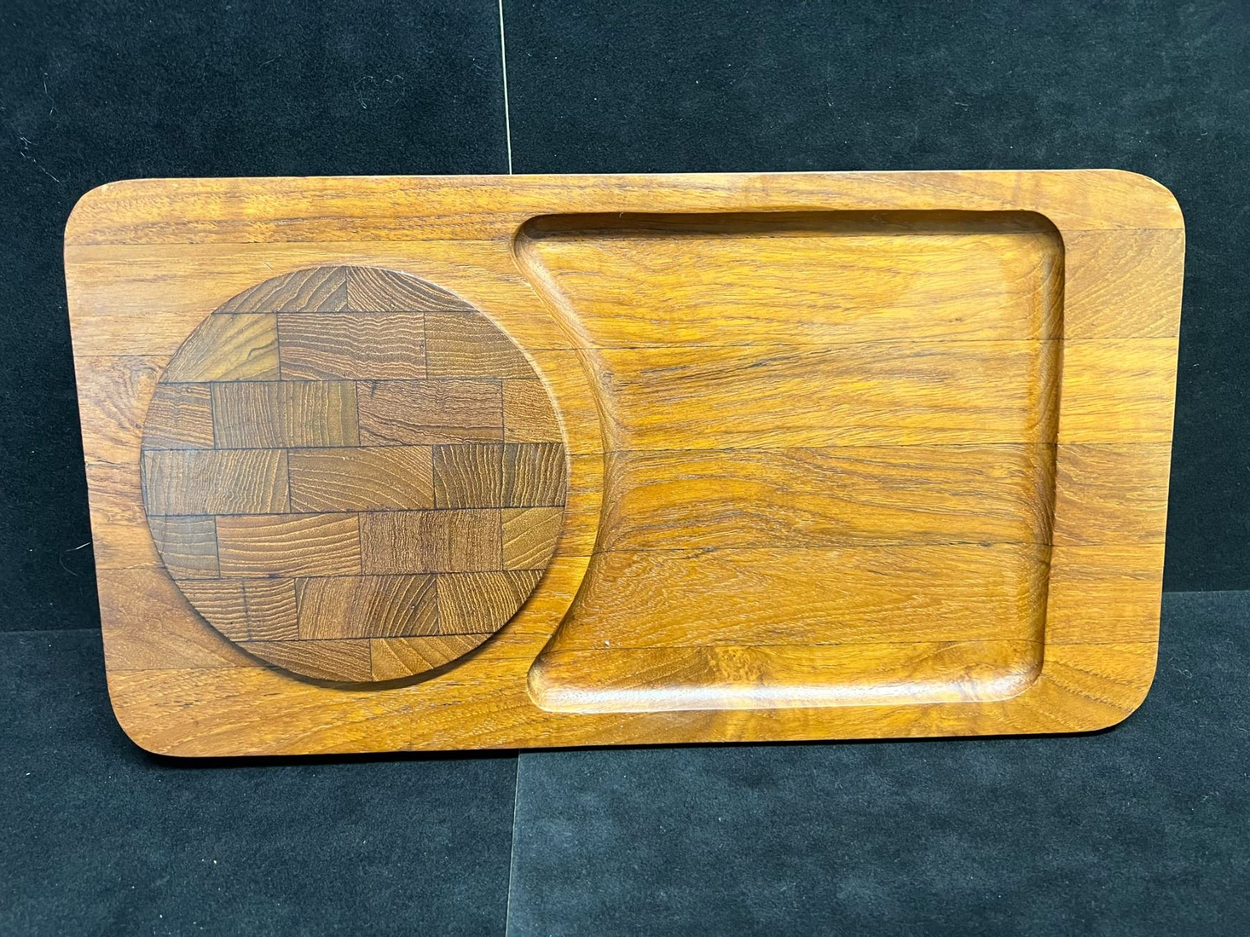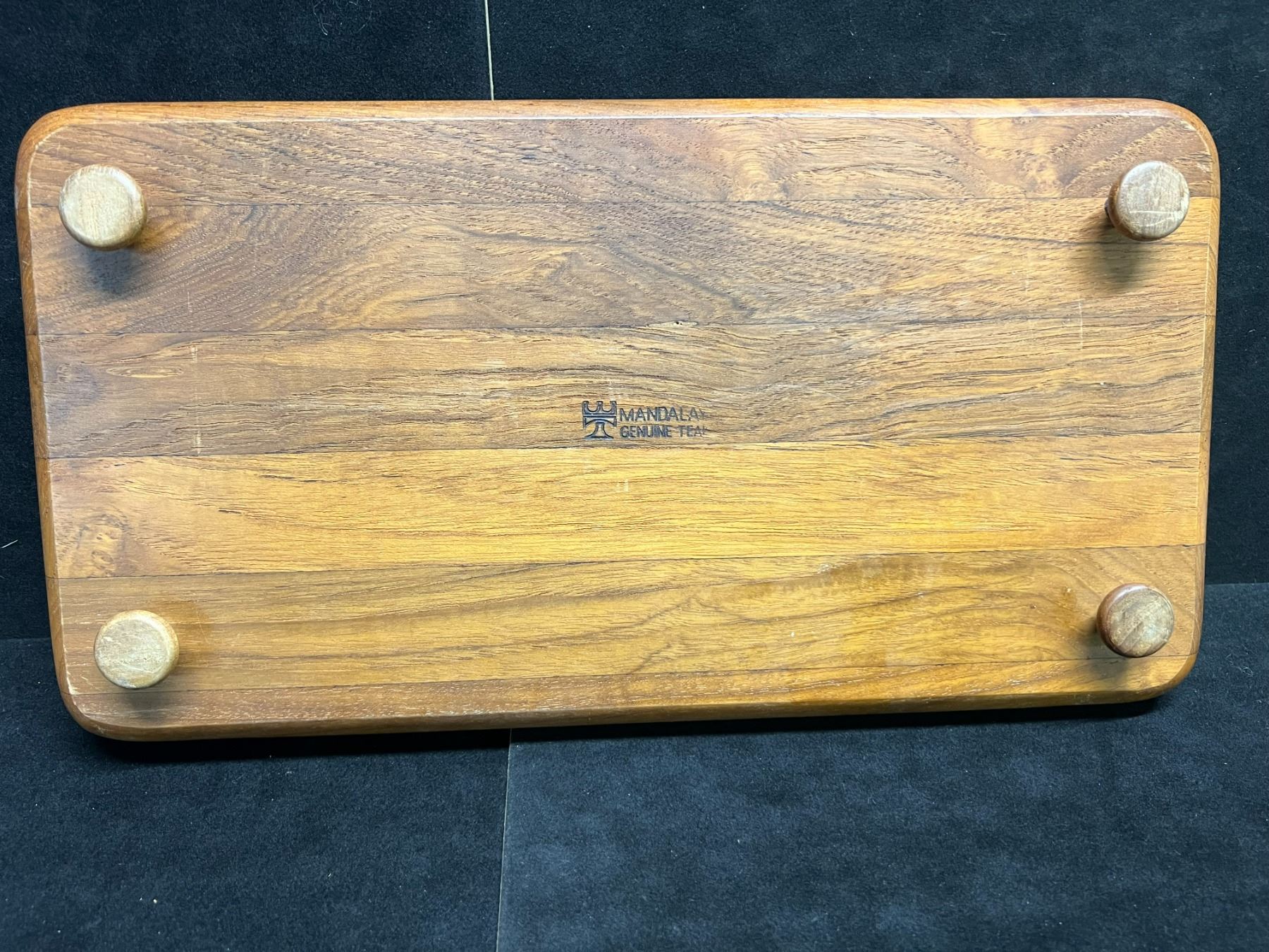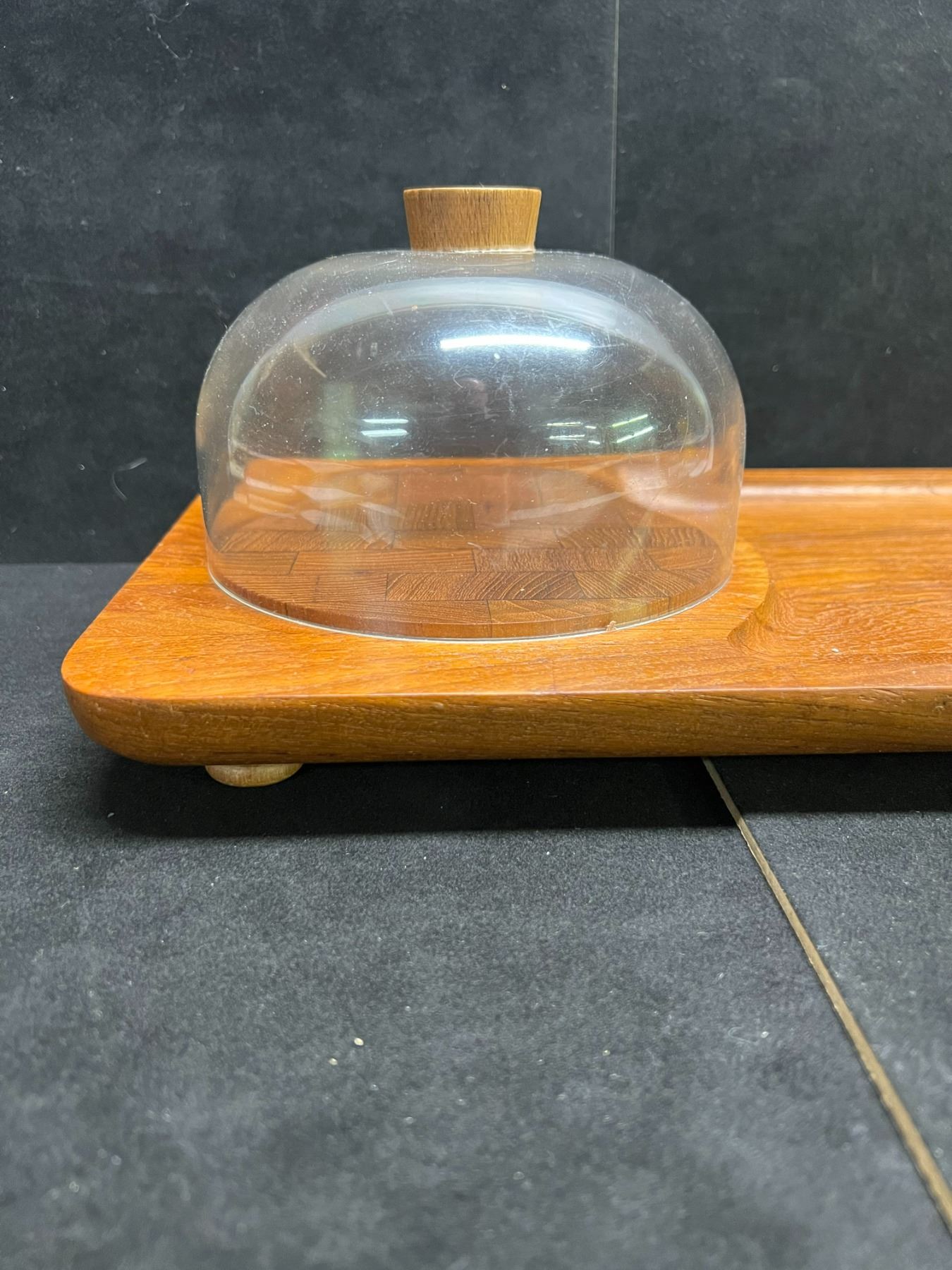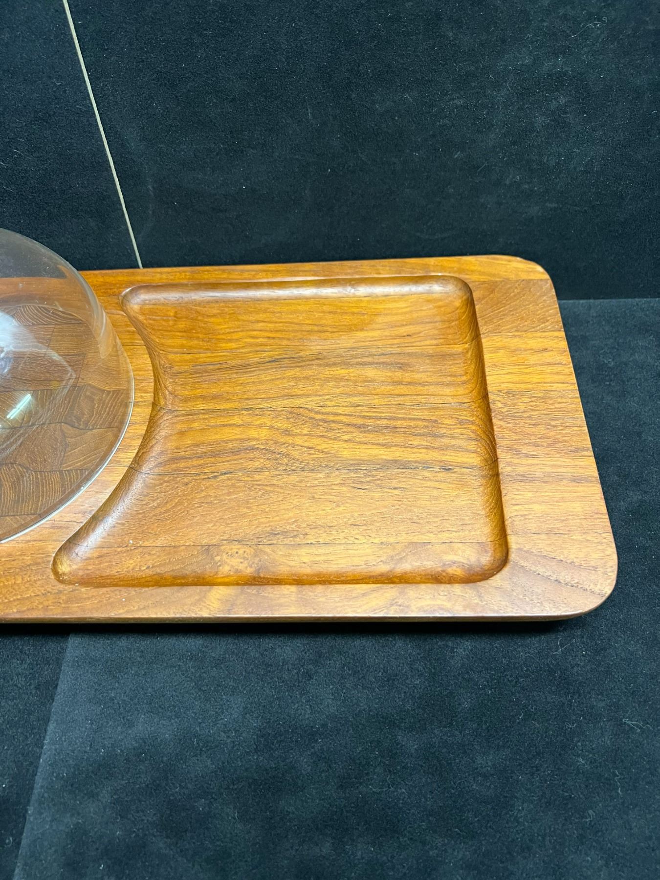 Vintage Mandalay Genuine Teak Serving Tray / Cheese Tray - Plastic dome (approx: 15x8")