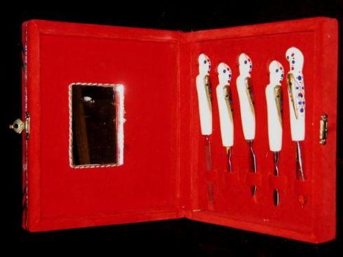 5 pc. Vintage Manicure set with Bird Carved Handles.