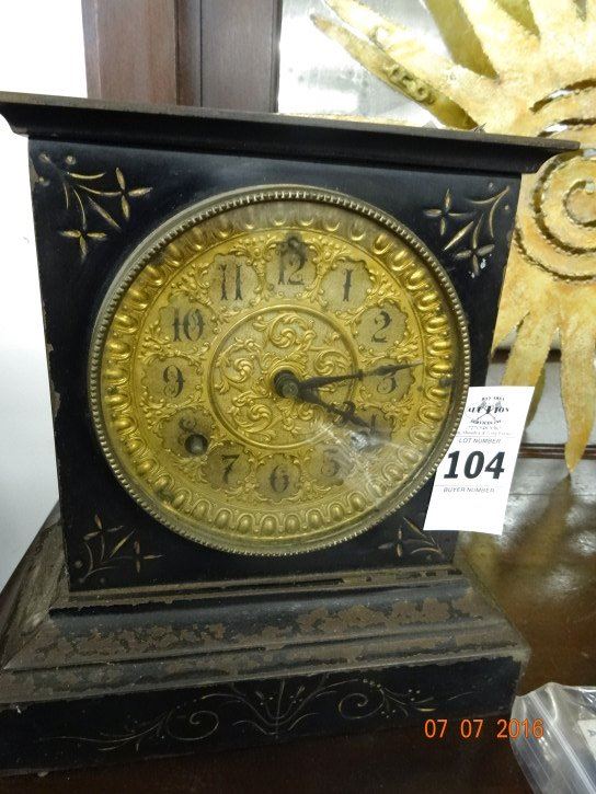Vintage Mantle Clock - Metal Case, Key & Pendulum Inside