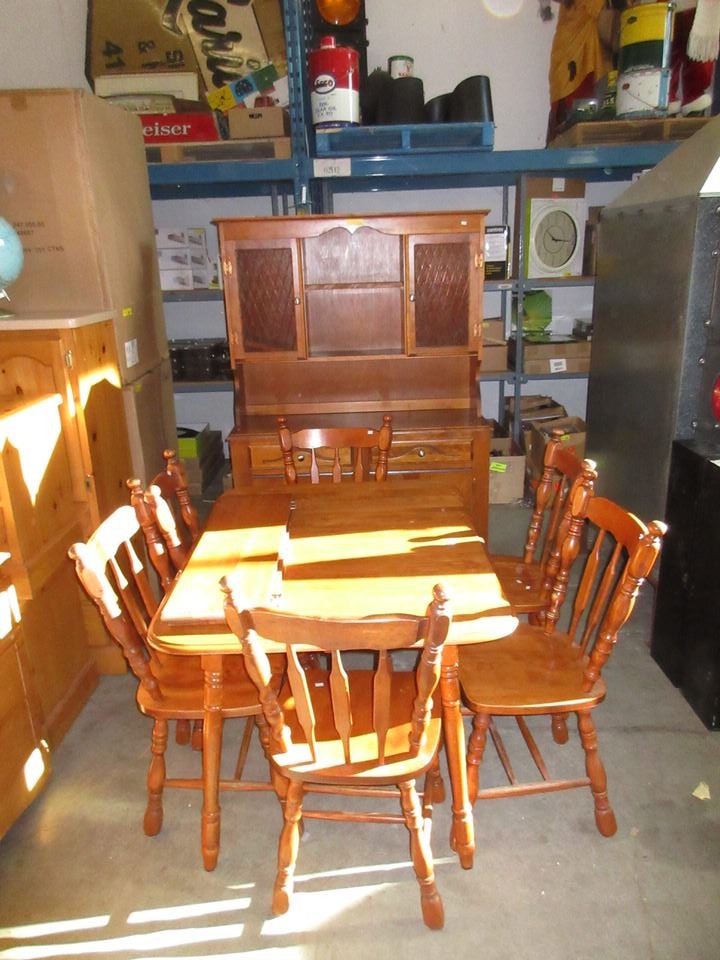 Includes a table with 2 leaves & 6 chairs. Hutch is 17" x 48" x 70" tall