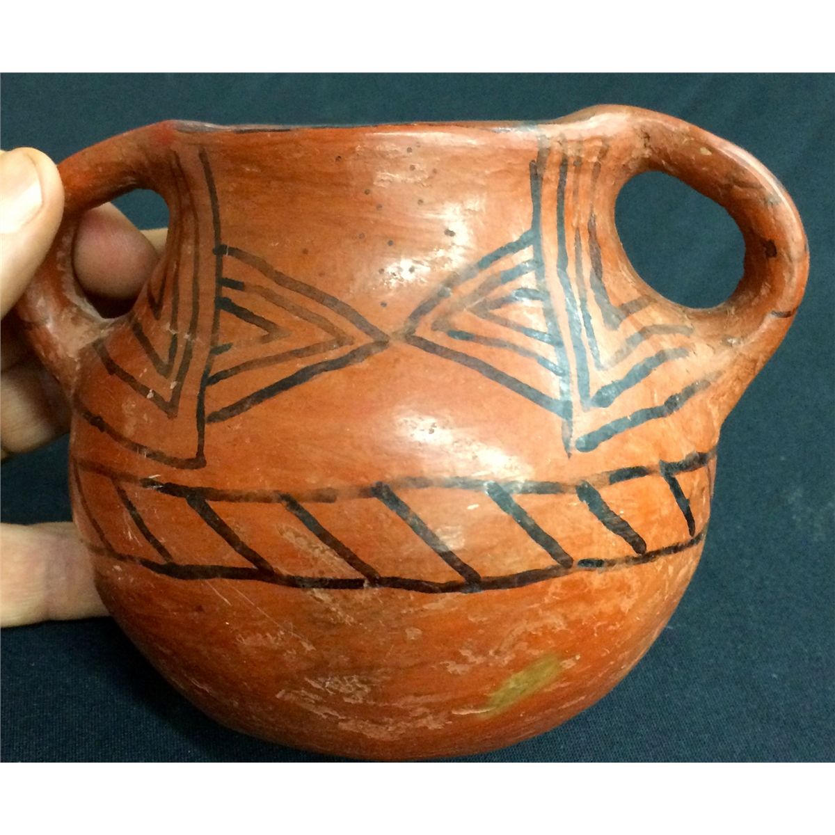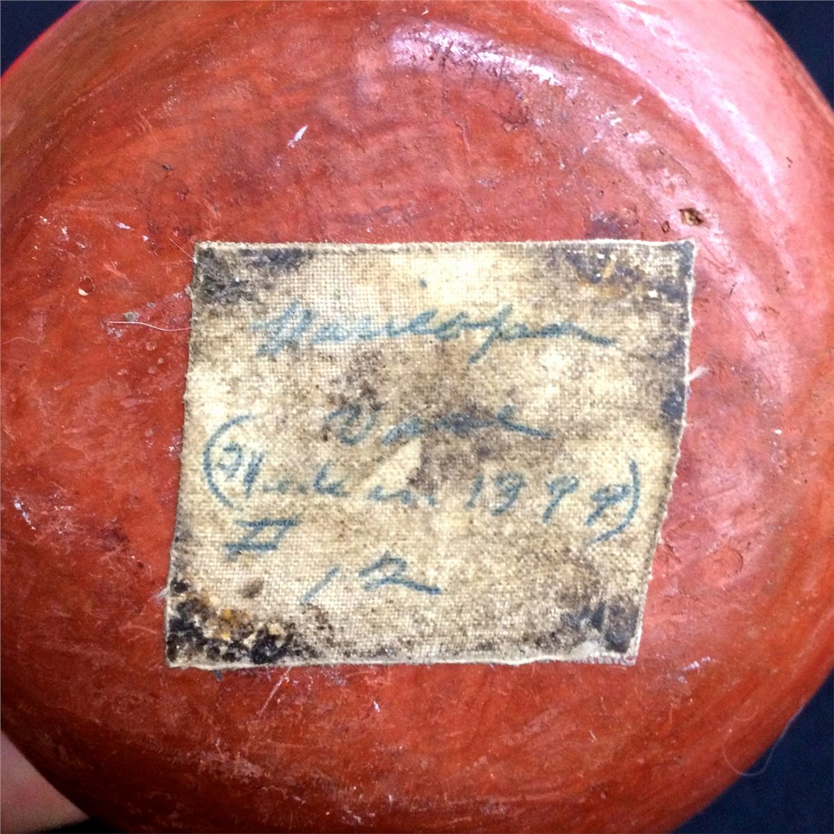 This Vintage Maricopa Redwear Pot is from the Bert Robinson Collection. It has a tag on the bottom showing the number 12 and states it was made in 1899. According to the previous owner, this pot was on display as part of the Robinson Collection at the Heard Museum. It measures approx. 4" tall x 5" wide.