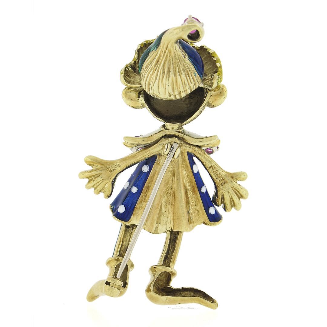 A vintage solid 18k yellow gold cown brooch, with enamel work and 6 round cut natural ruby (0.32ctw ). Measures 47.6x27.8mm and weighs a total of 18.2 grams.