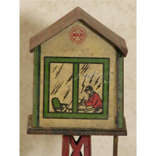 Vintage Marx Train Control Tower 9 1/4" high. Condition: some paint chips and rust.
