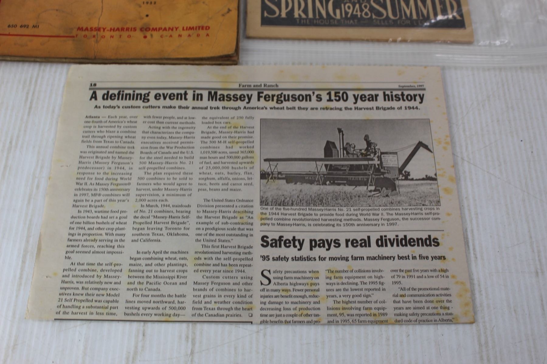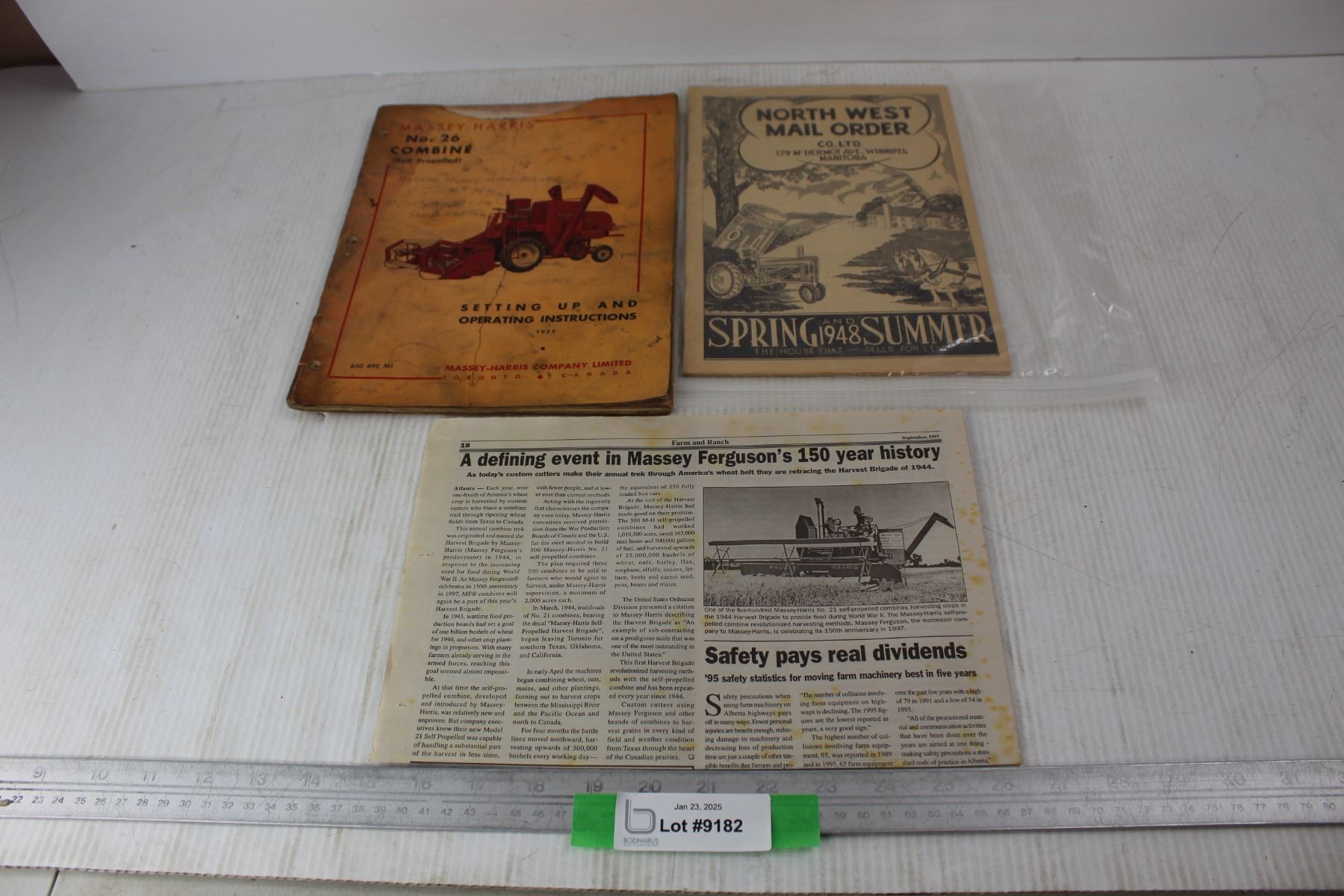 Vintage Massy- Harris Cobime Operators Manuel, Massy Ferguson News Paper Article, Northwest Mail Order 1948 Catalogue