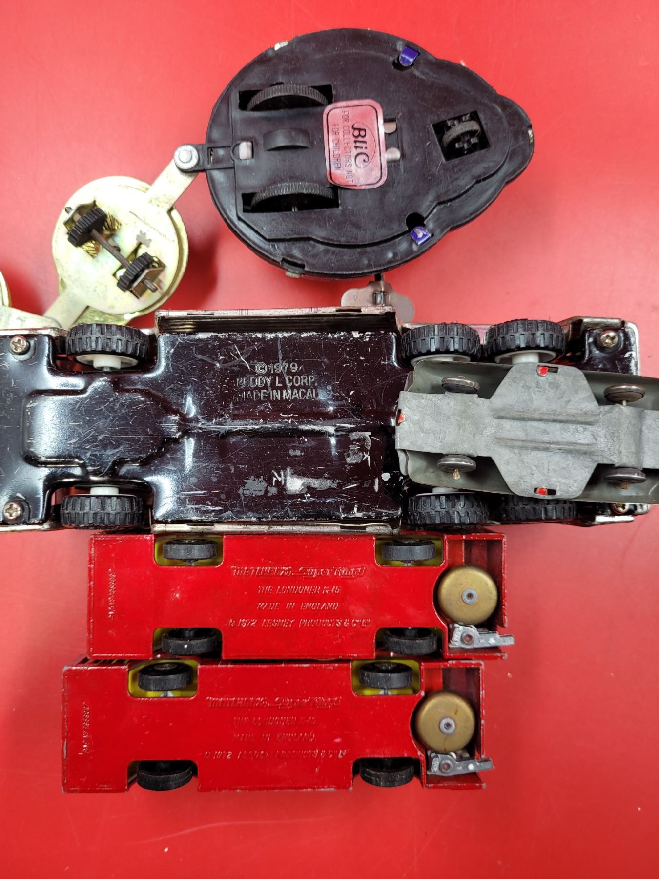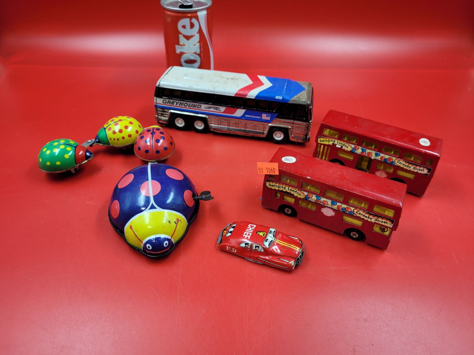 Vintage Matchbox London Busses, Buddy L Corp. Bus & Lady Bug Train