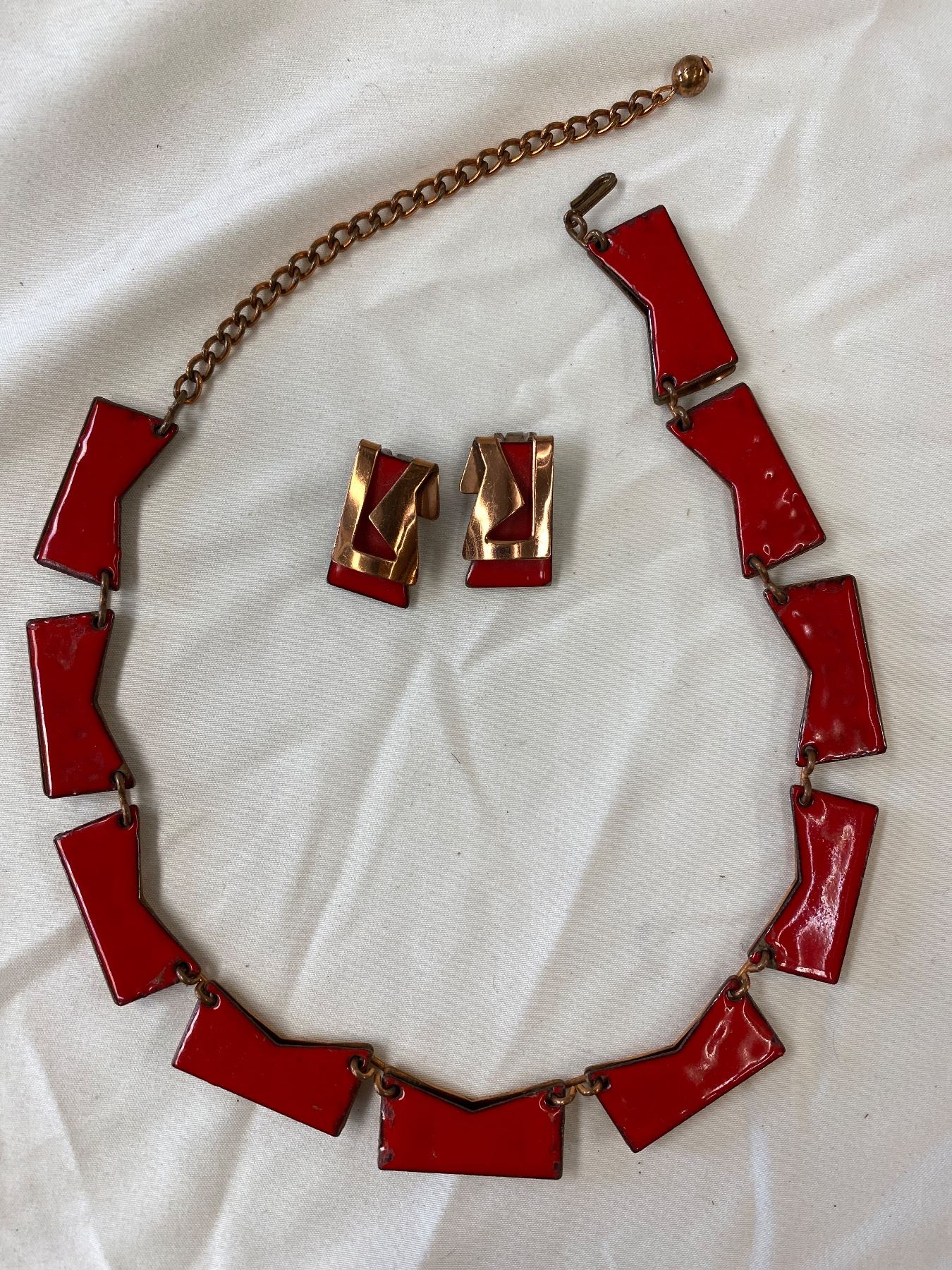 Vintage Matisse Enamel Necklace And Earrings