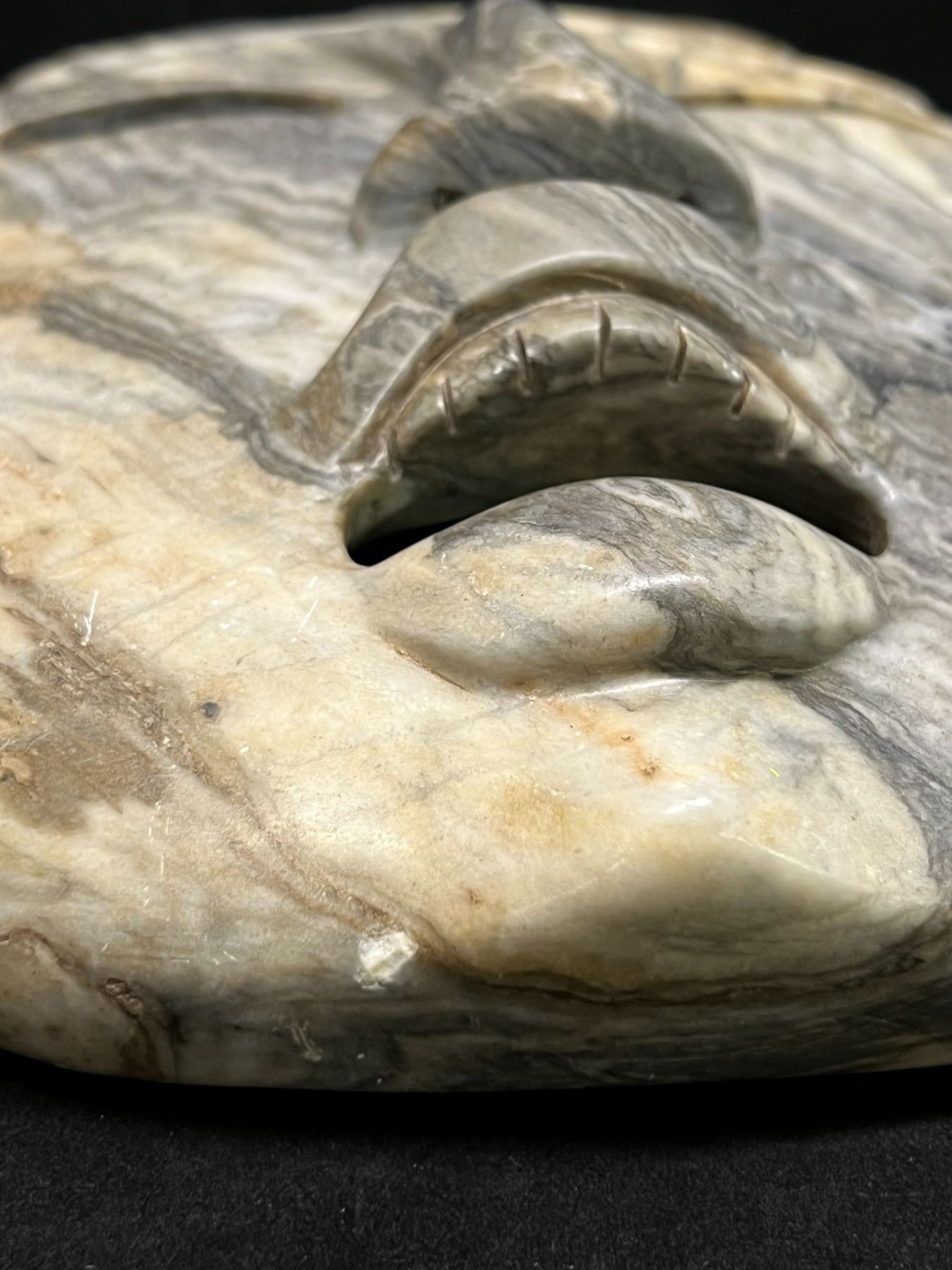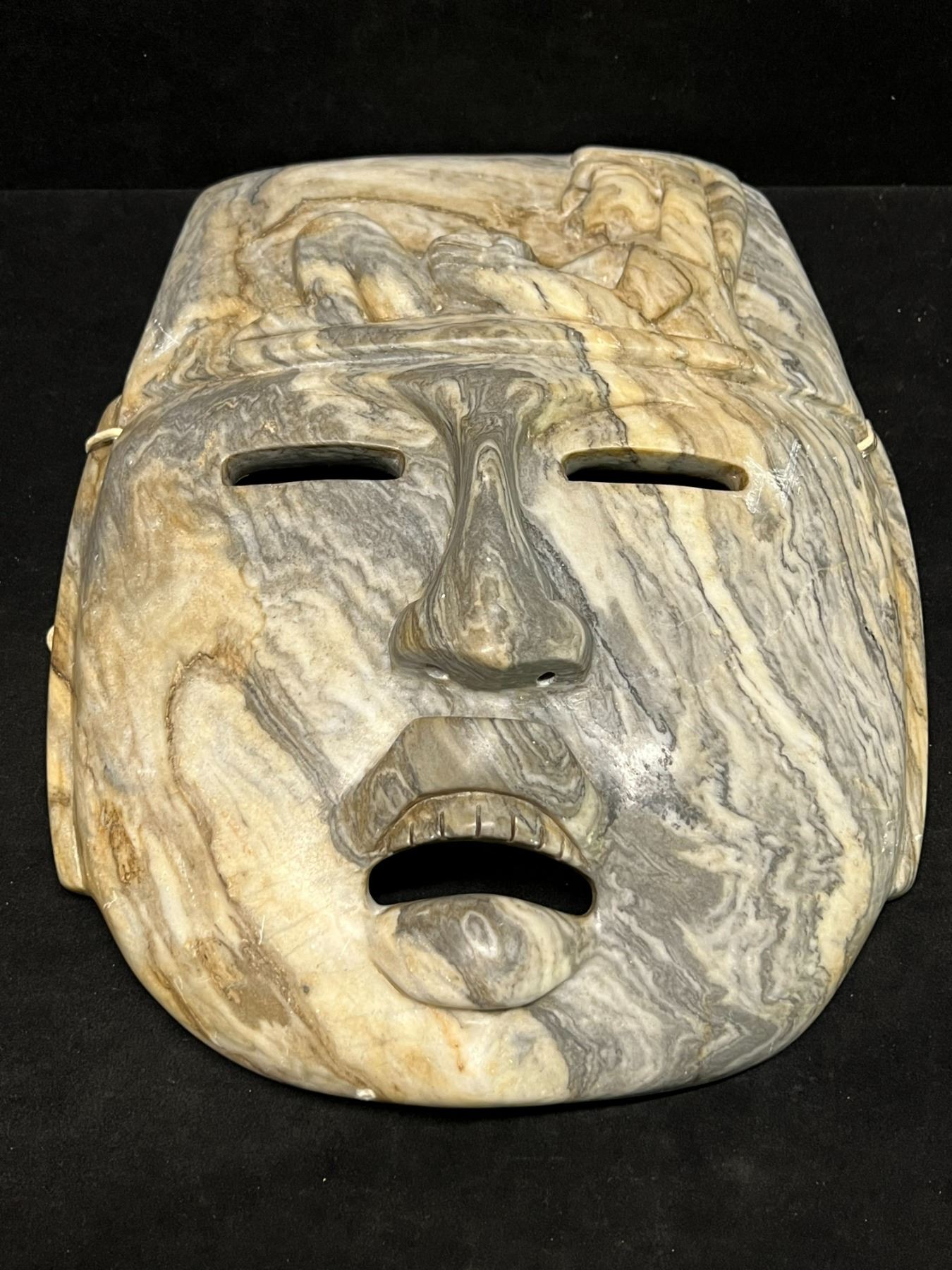 Vintage Mayan Aztec Stone Hand Carved Mask Marble? (Approx: 11.5x9.5")