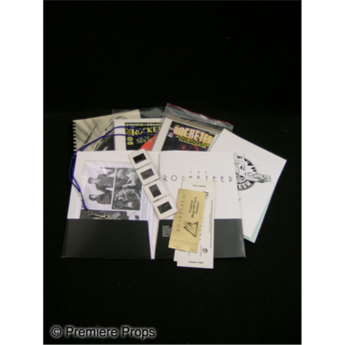 The Rocketeer (1991) - Memorabilia Collection - Features vintage collector items from Disney's "The Rocketeer." This lot includes two different scripts, four comic books, four slides from the film, promotion guide, premiere junket, premiere pass, passport, and tickets.