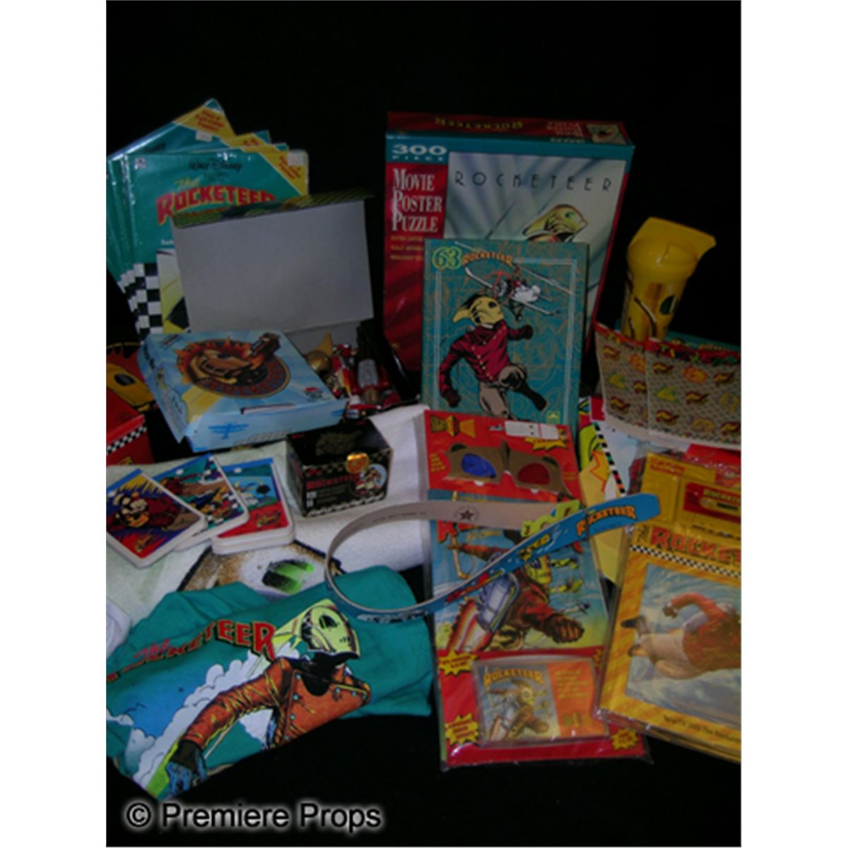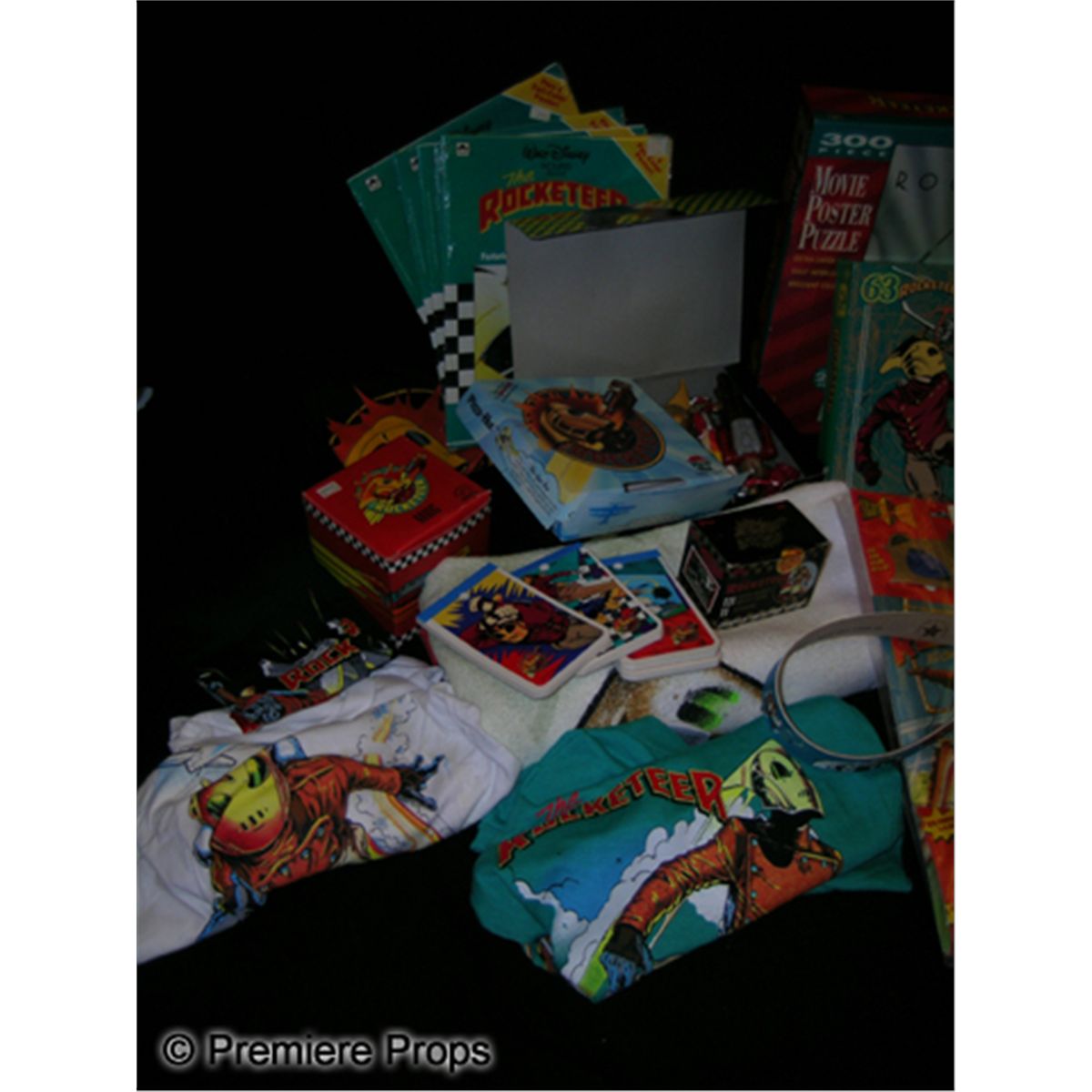 The Rocketeer (1991) - Memorabilia Collection - Features vintage collector items from Disney's "The Rocketeer." This lot includes toys, cards, cups, t-shirts, towels, pillow cases, stickers, pizza box, puzzles, books, and other fantastic items. The pillow cases are signed by Rocketeer creator Dave Stevens. Oversized item. Additional postage required.