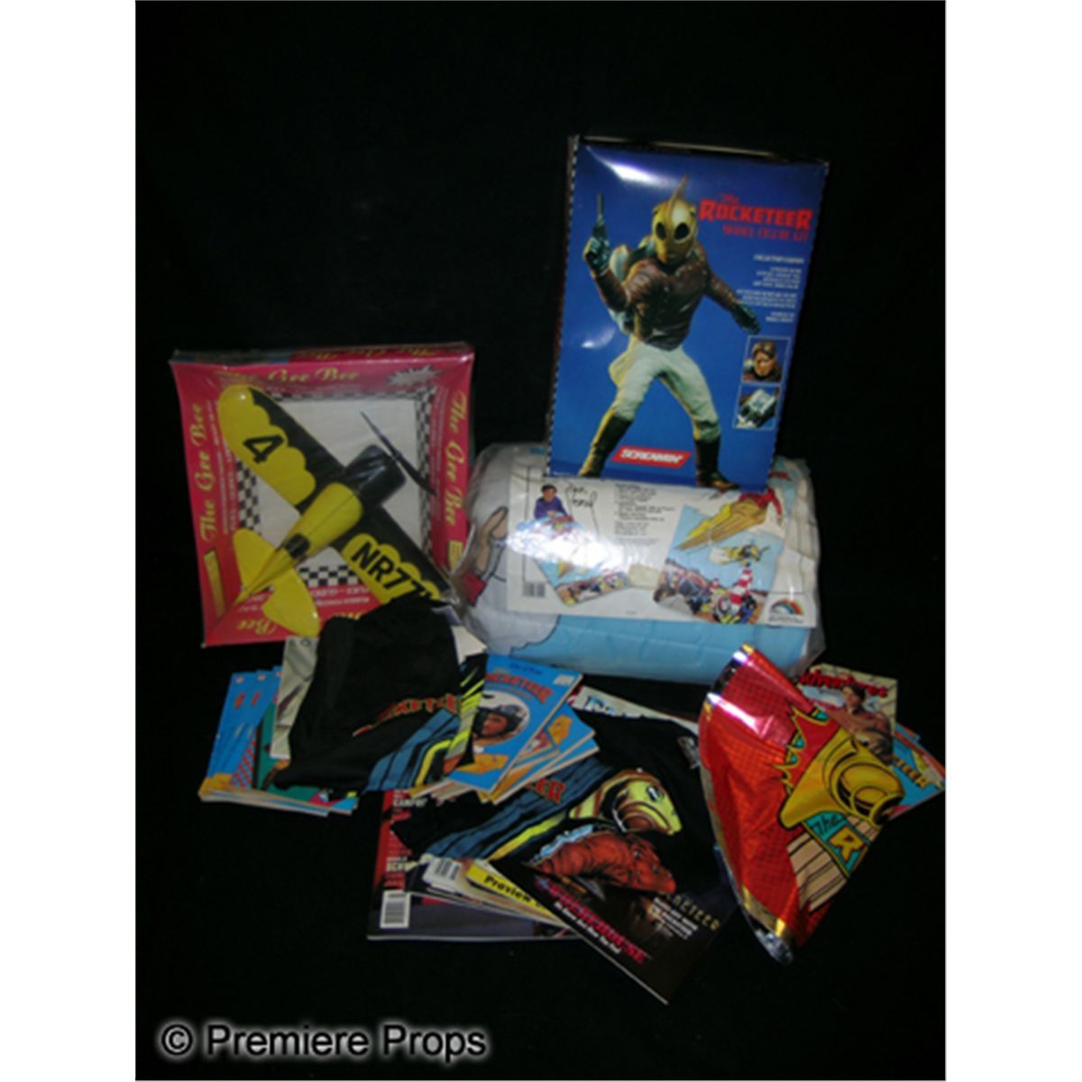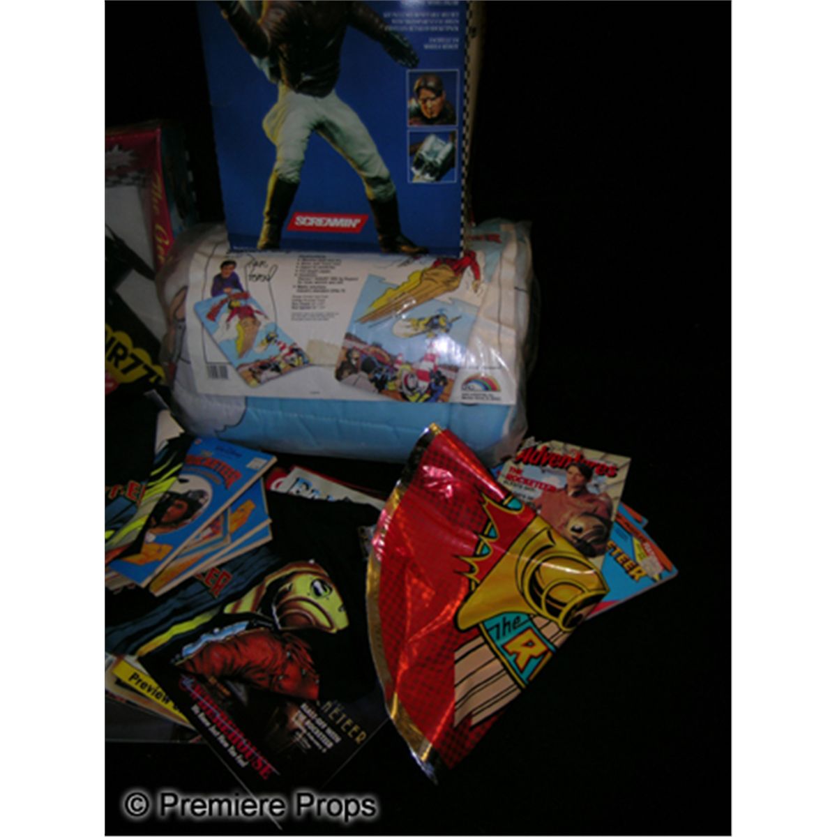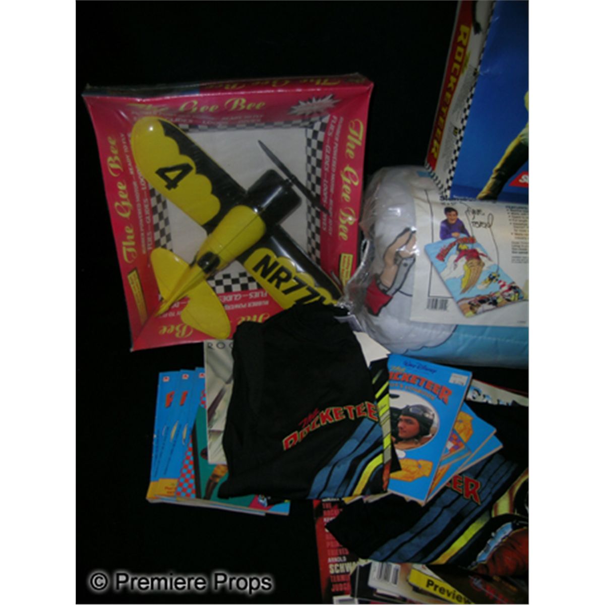 The Rocketeer (1991) - Memorabilia Collection - Features vintage collector items from Disney's "The Rocketeer." This lot includes books, magazines, sleeping bag, model toy, model plane, t-shirts, balloon, and other fantastic items. The sleeping bag is signed by Rocketeer creator Dave Stevens. Oversized item. Additional postage required.