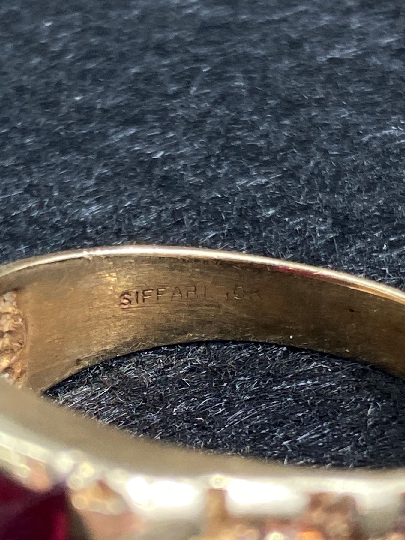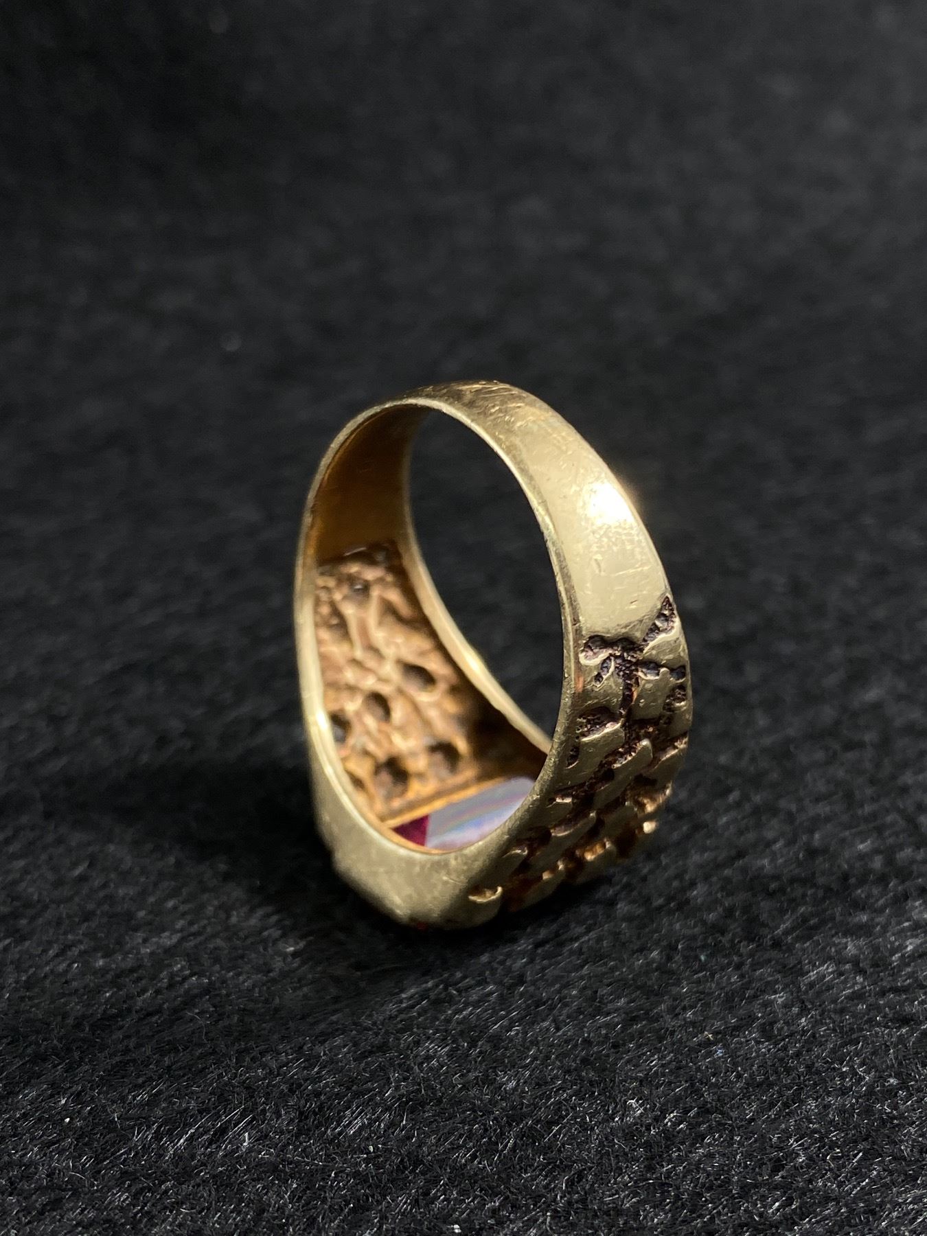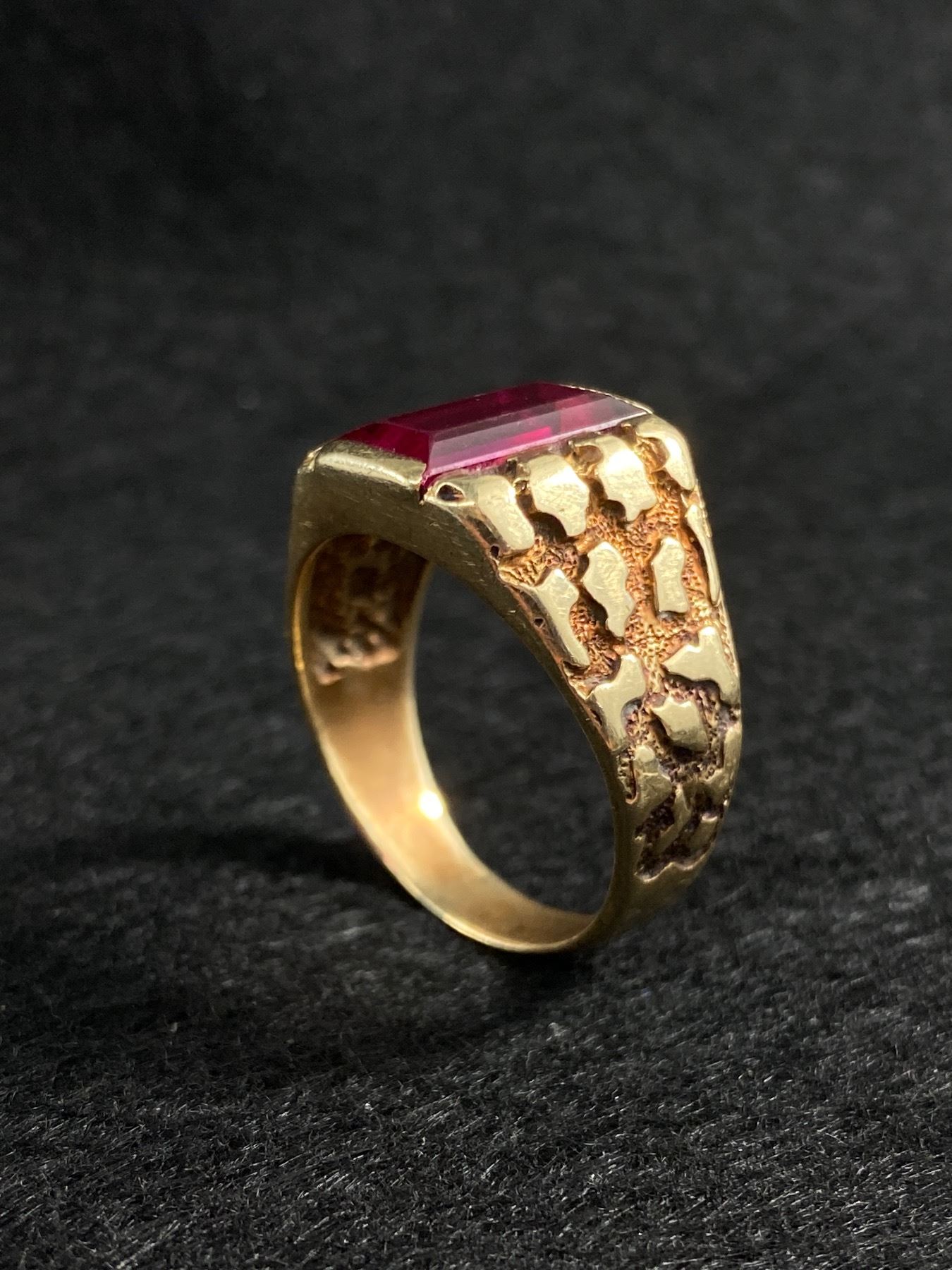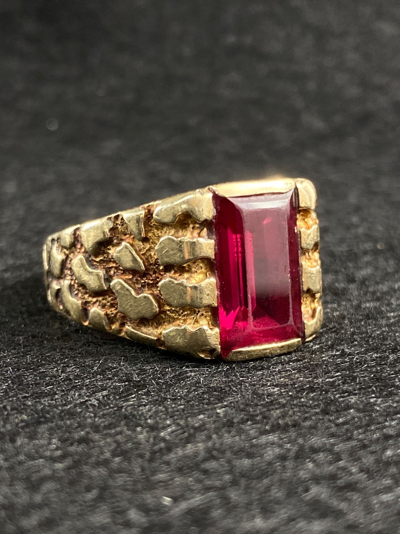 Vintage Men's 10K Gold Ring with Ruby (?) Center Stone.Size 13.5