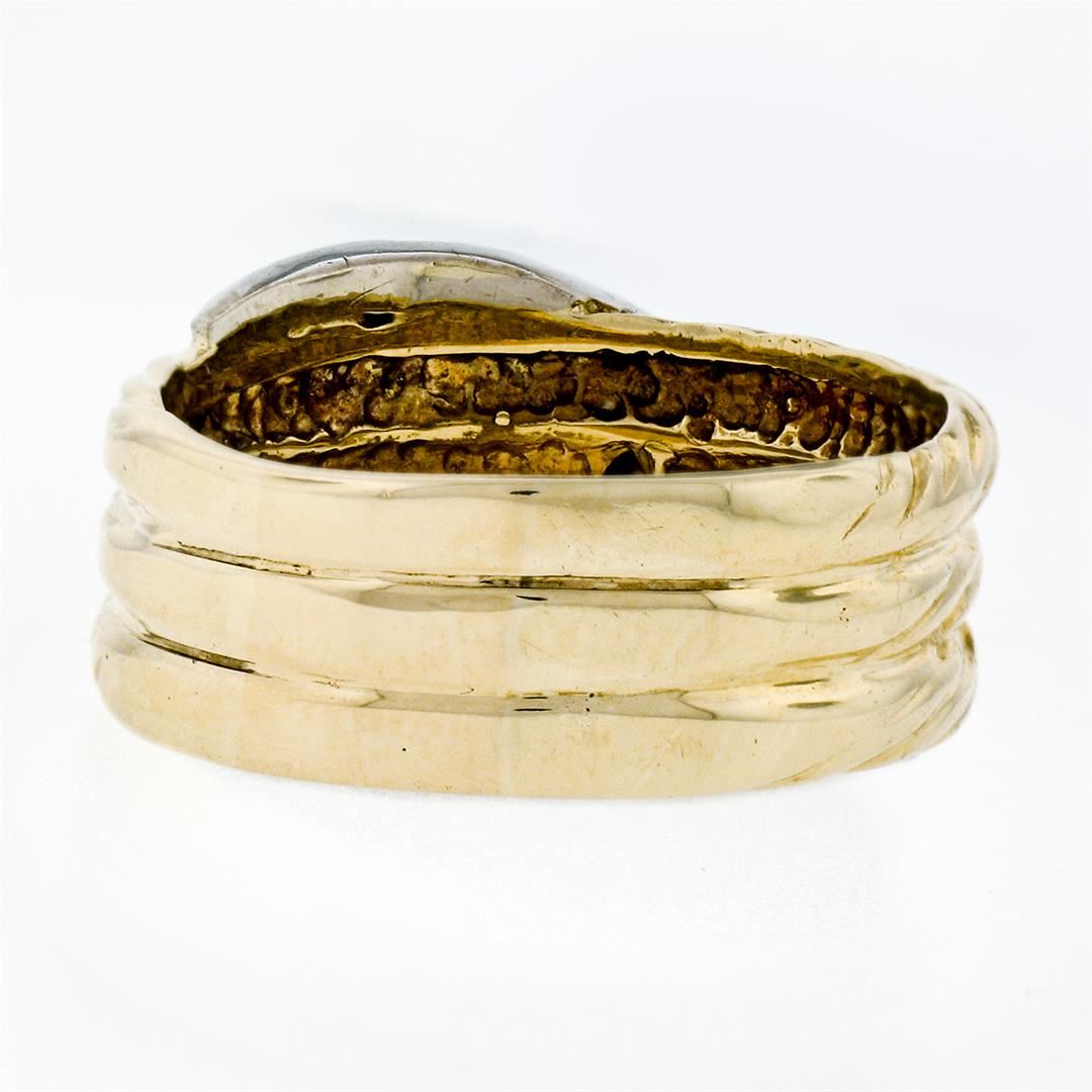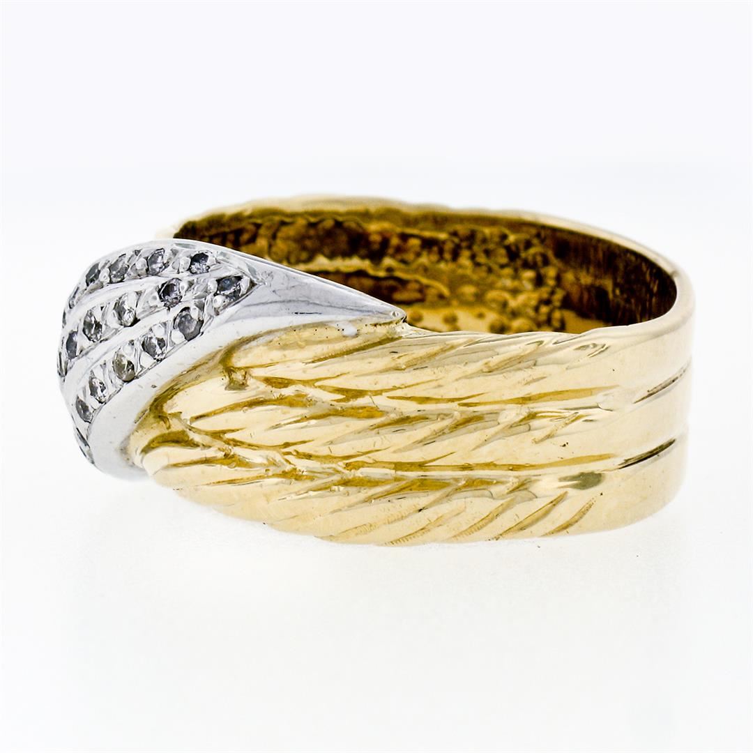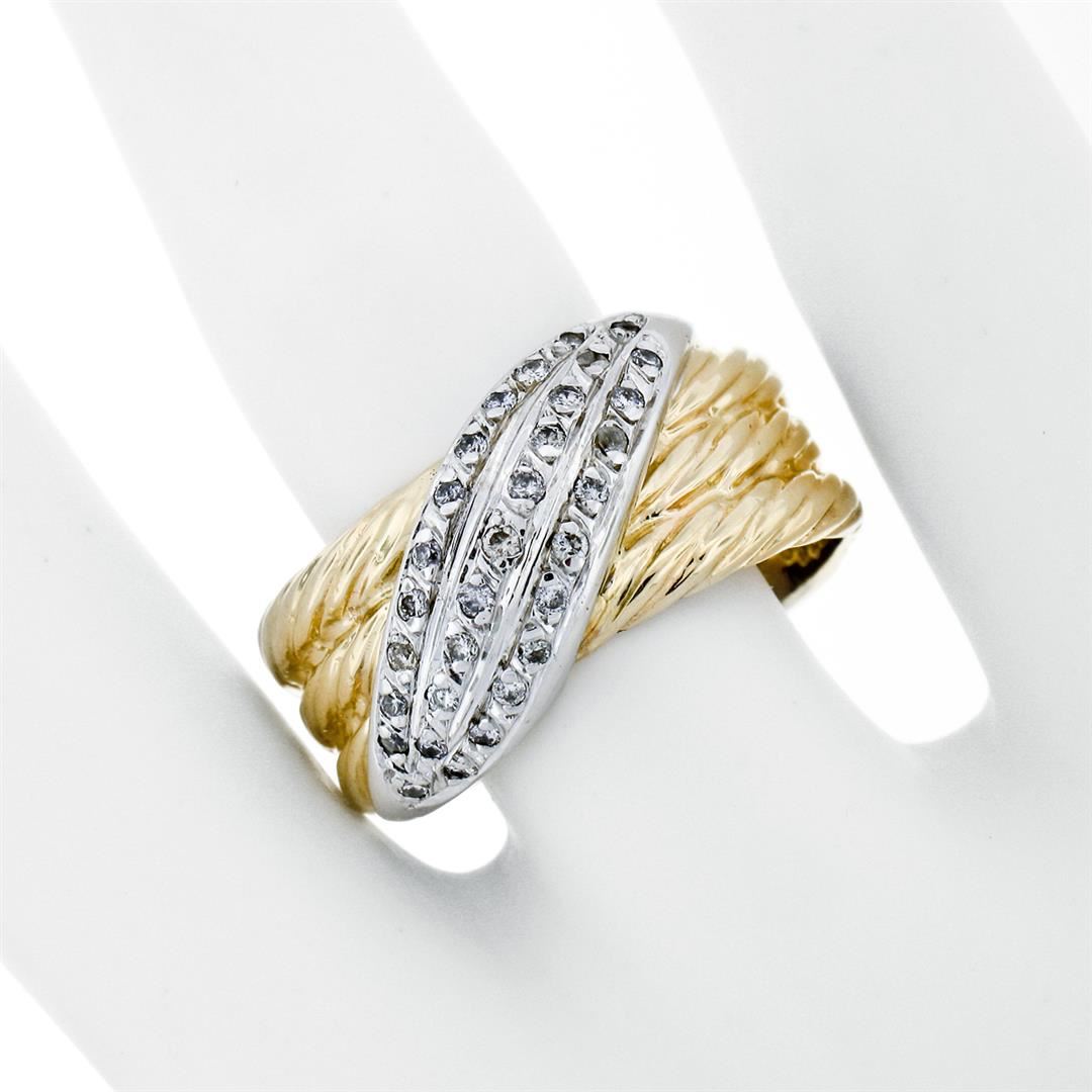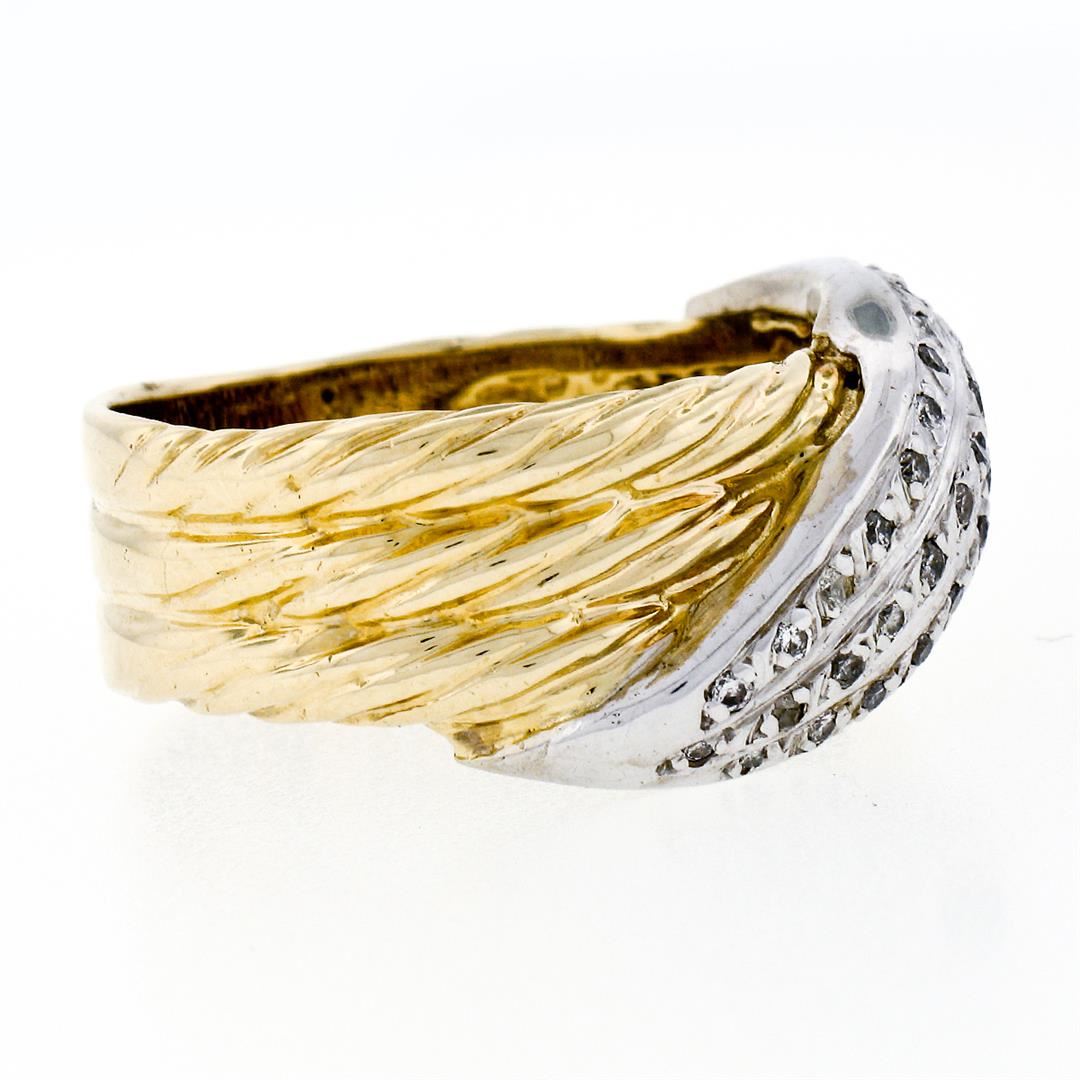A vintage solid 14k white and yellow gold cable wide ring, with 30 round brilliant cut natural diamonds (H/I- SI1/SI2 ; 0.30ctw). The ring is size 10.5, weighs a total of 12.28 grams, and measures 13.0mm wide.