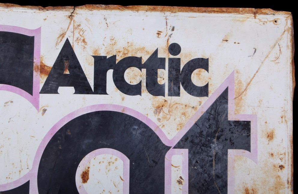 This lot features a vintage metal Arctic Cat dealer sign. This piece is a sign that would have been place outside a place of business that deals in Arctic Cat products. This is a very cool piece that displays well. It is in good condition for its age, it does have wear. it measures 60" W x 36" H