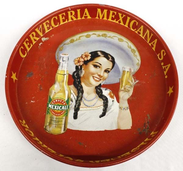 Vintage Metal Cerveza Mexicali Beer Tray, measures 13''D x 1.5''H