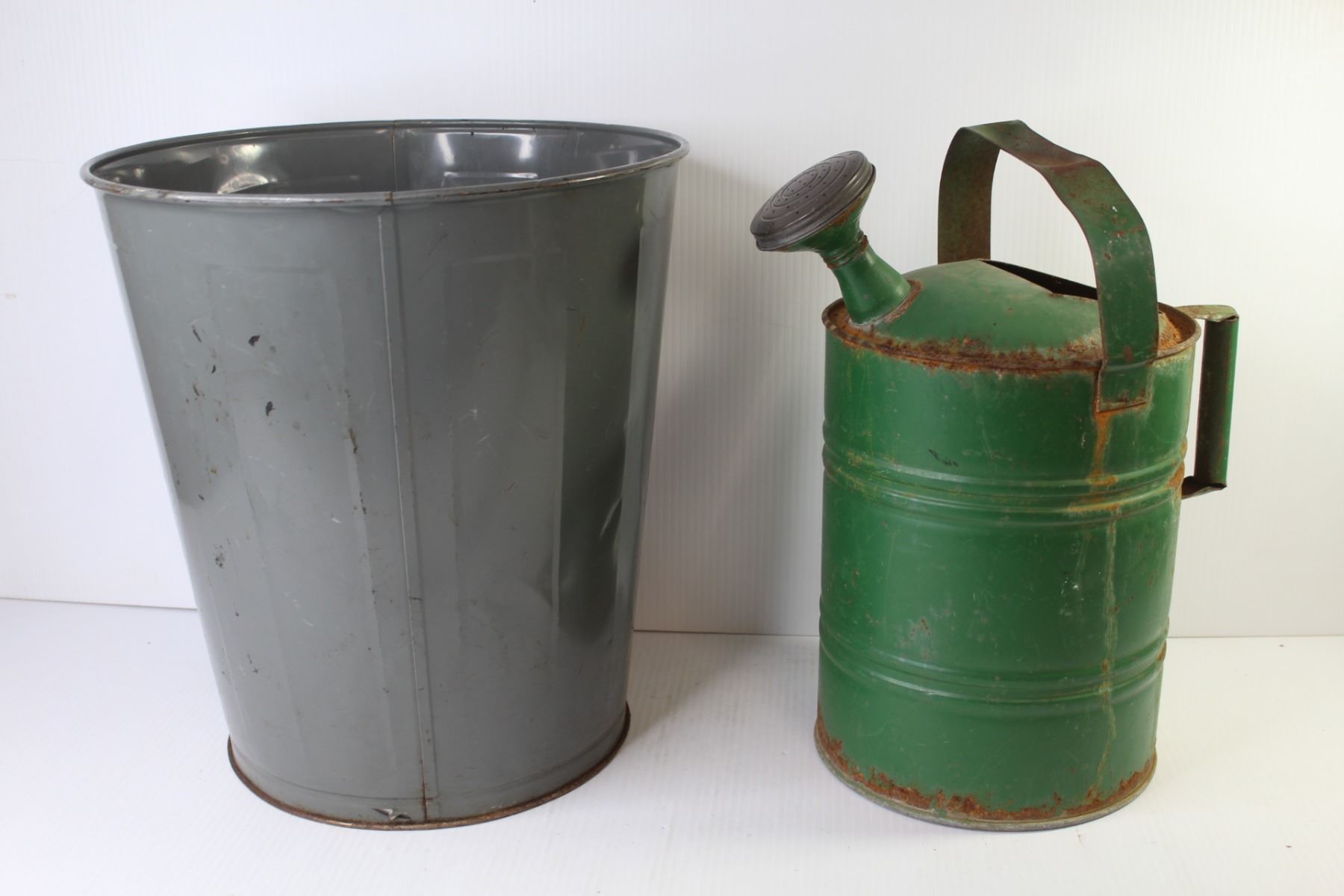 Vintage Metal Class Room Garbage Can - Vintage watering Can (some Rusting)