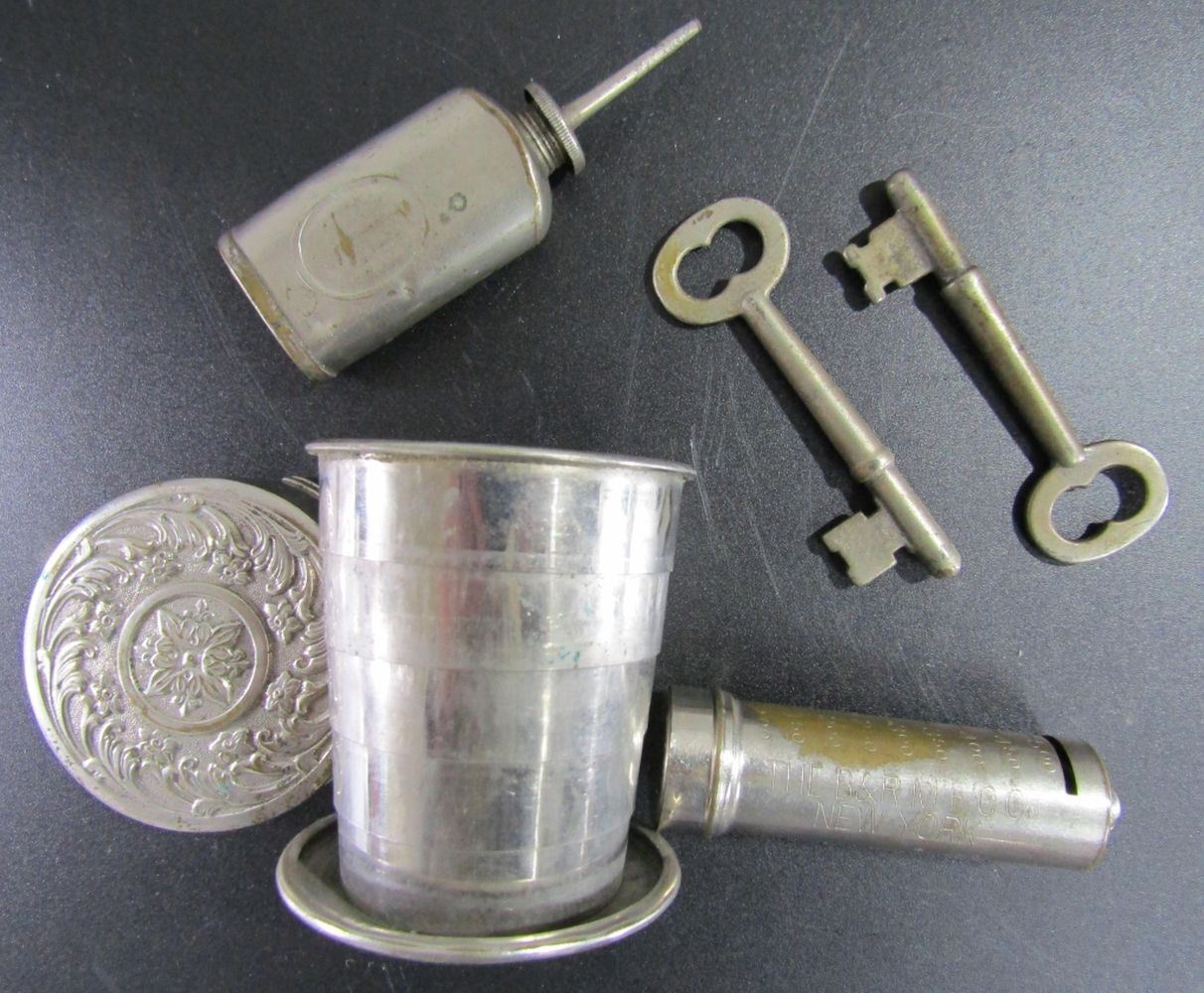 VINTAGE DIME TUBE B&R MFG NEW YORK; Antique Sm. COMPTOMETER or Gun / Fishing Reel Oiler Oil No Lid; 2-SKELETON KEYS