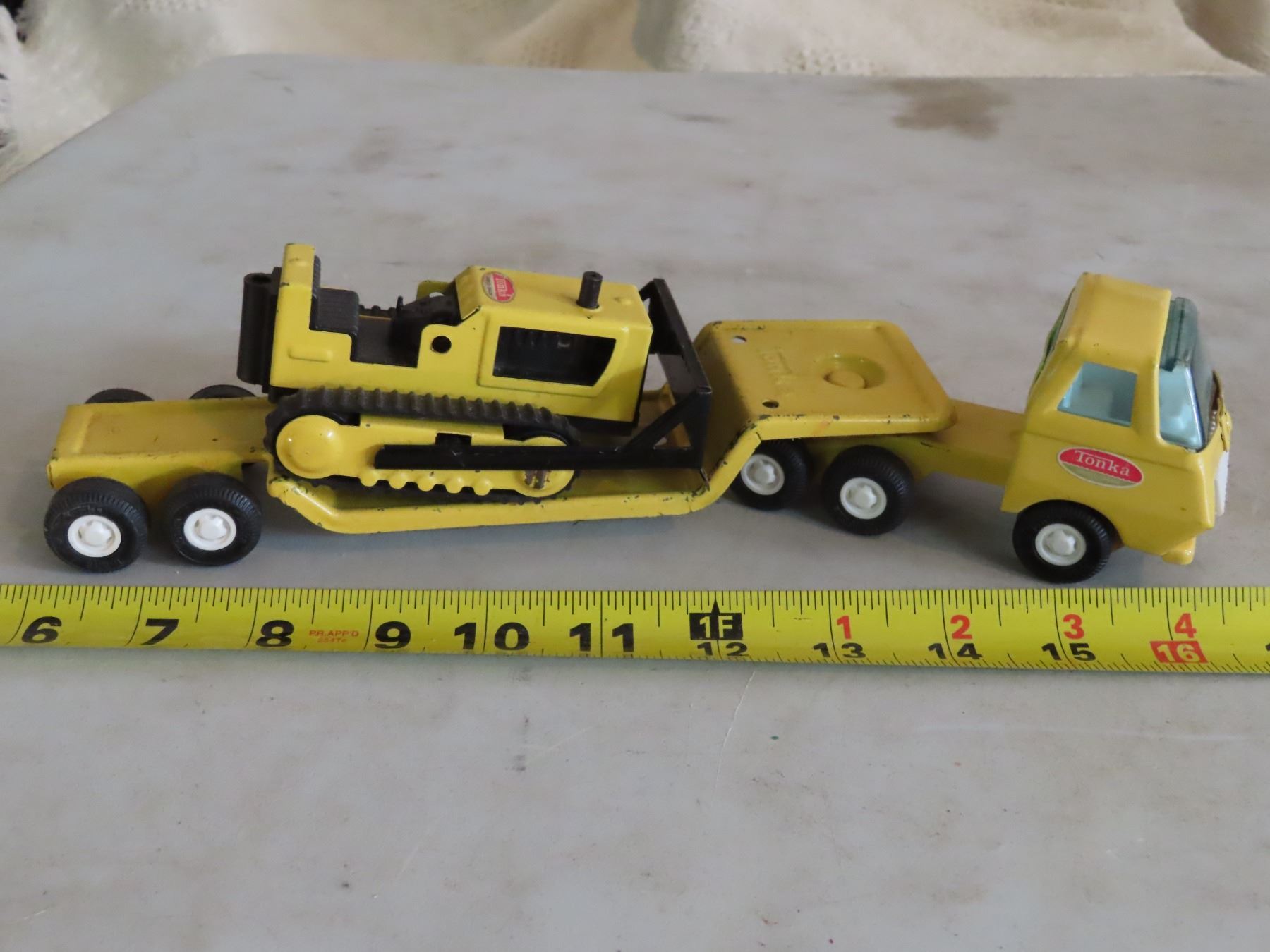 Vintage Metal Tonka Semi & Trailer with Bulldozer
